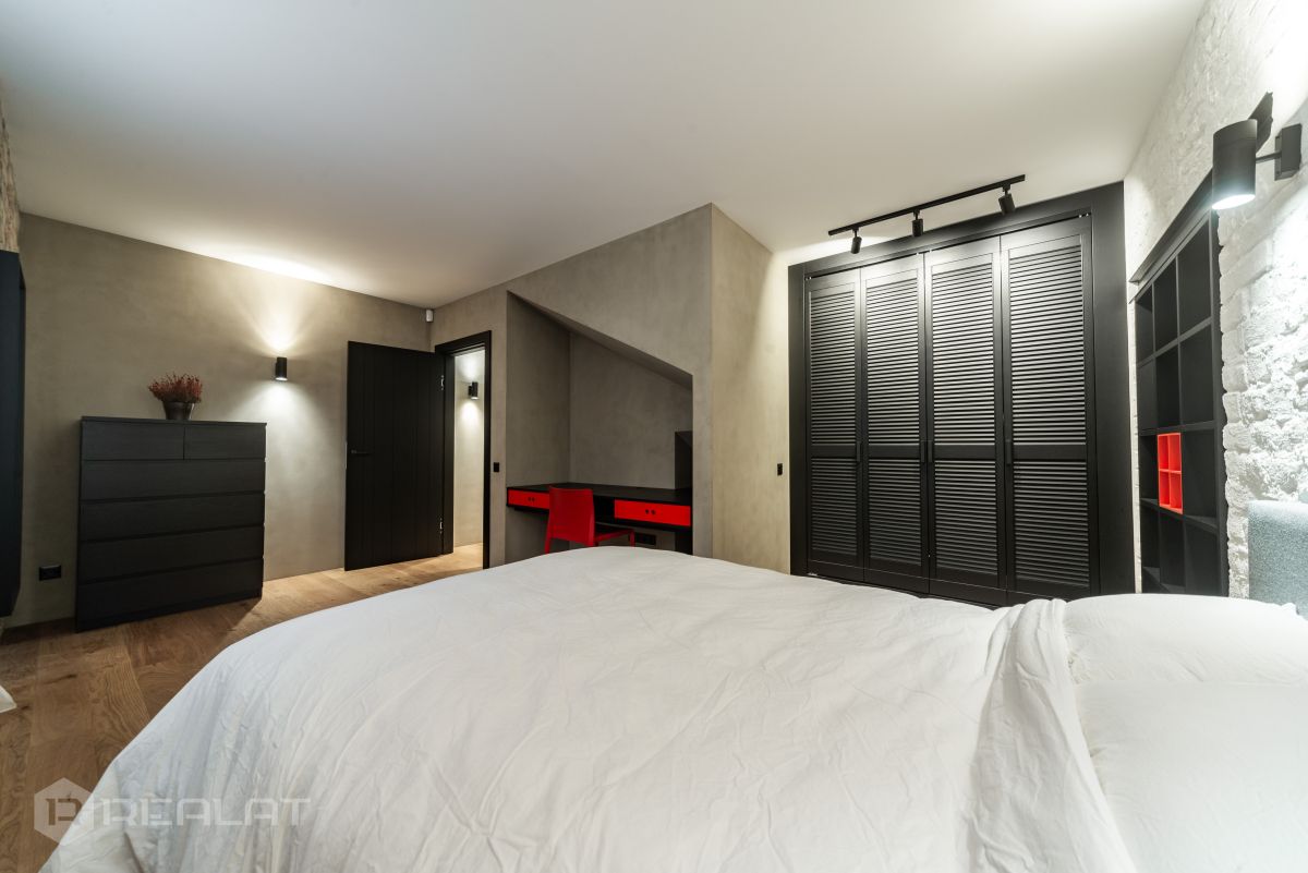 Exclusive, spacious, and modern 140 m² apartment with a terrace and two parking spaces in the quiet courtyard of Artilērijas Street.