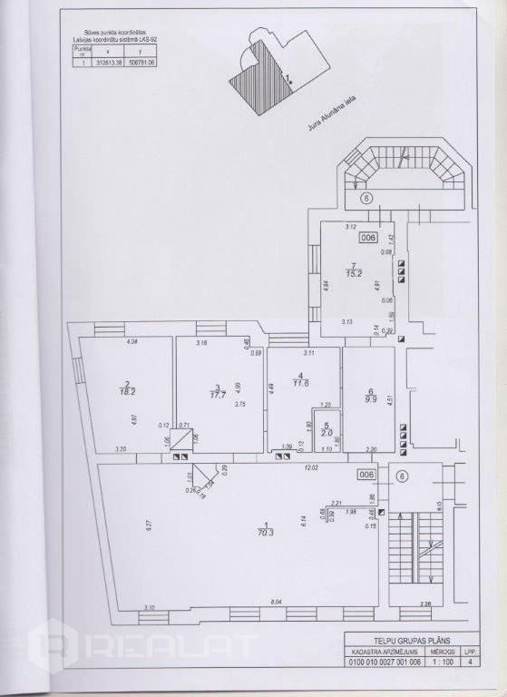 Planning - studio type, two rooms isolated, cabinet.