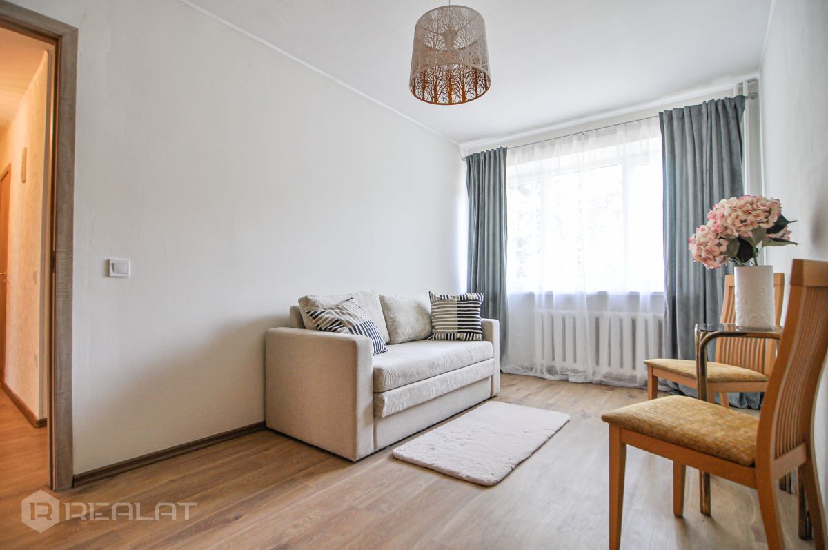 For rent – a freshly renovated 2-room apartment on Gaujas Street 32, located in a quiet and green area next to Mežaparks.