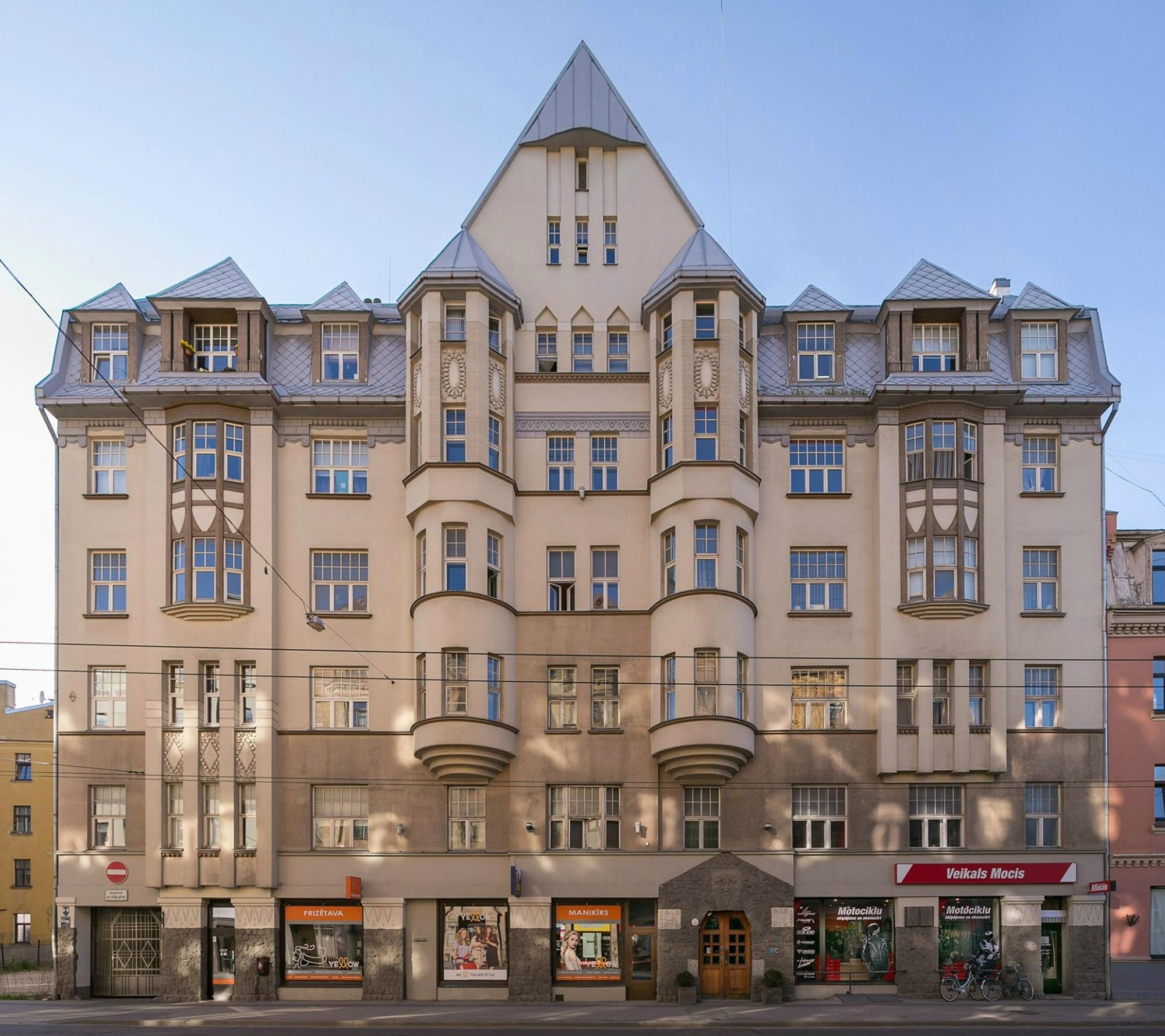 This beautiful rental building was previously known as "Elsiņa House". It reflects the architectural style of the early 20th century and is highly regarded among history enthusiasts and architecture lovers. The façade of the building features diverse ornamentation and detailing characteristic of that era.