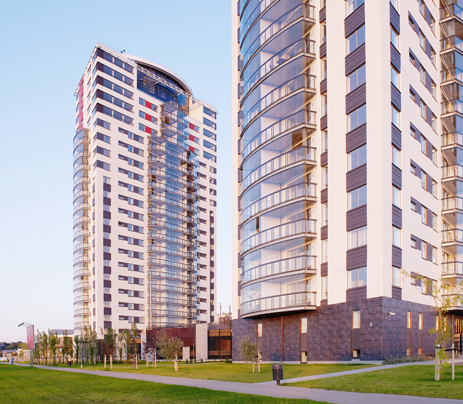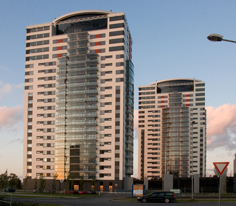 One of the largest planned and realized living house complexes in Riga. It consists of four 24-storied living buildings, totally about 560 apartments. For conveniences of the residents, there is a parking lot for 620 cars in the underground parking lot and for 100 cars in the acceding territory of the houses. Closed greenery zone next to the houses – a spacious, greened territory of 6000 m2 with two playgrounds for children.