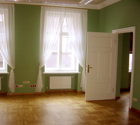 The office premises ranging from 50 to 140 m2 that occupy the lower floors are characterized by various layouts and diversified decoration styles. The door phone, security alarm system, built-in kitchen with household appliances, internet and telephone cables are all for your comfort and business. The apartments situated on the upper floors and ranging from 50 to 160 m2 offer independent heating system, television, internet, security alarm system, kitchens with built-in household appliances, floor heating in the bathrooms; by individual orders full or partial furnishing may be made, some apartments are also equipped with air conditioners. Also, apartments are available with exclusive decoration, parquet, built-in furniture of genuine wood, spacious kitchens with household appliances, terraces, air conditioners, saunas, Jacuzzis, mantelpieces, floor heating in the bathrooms.