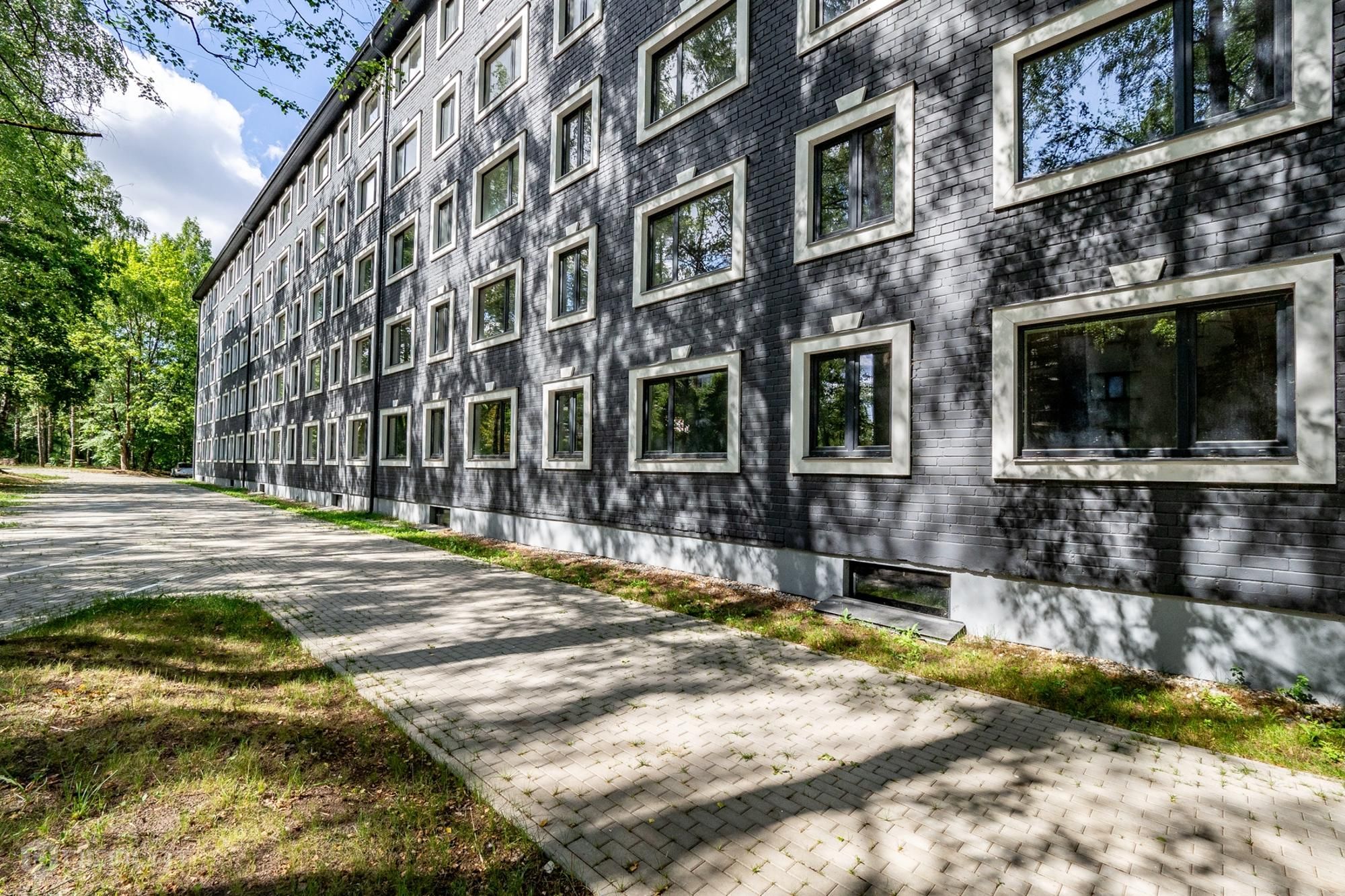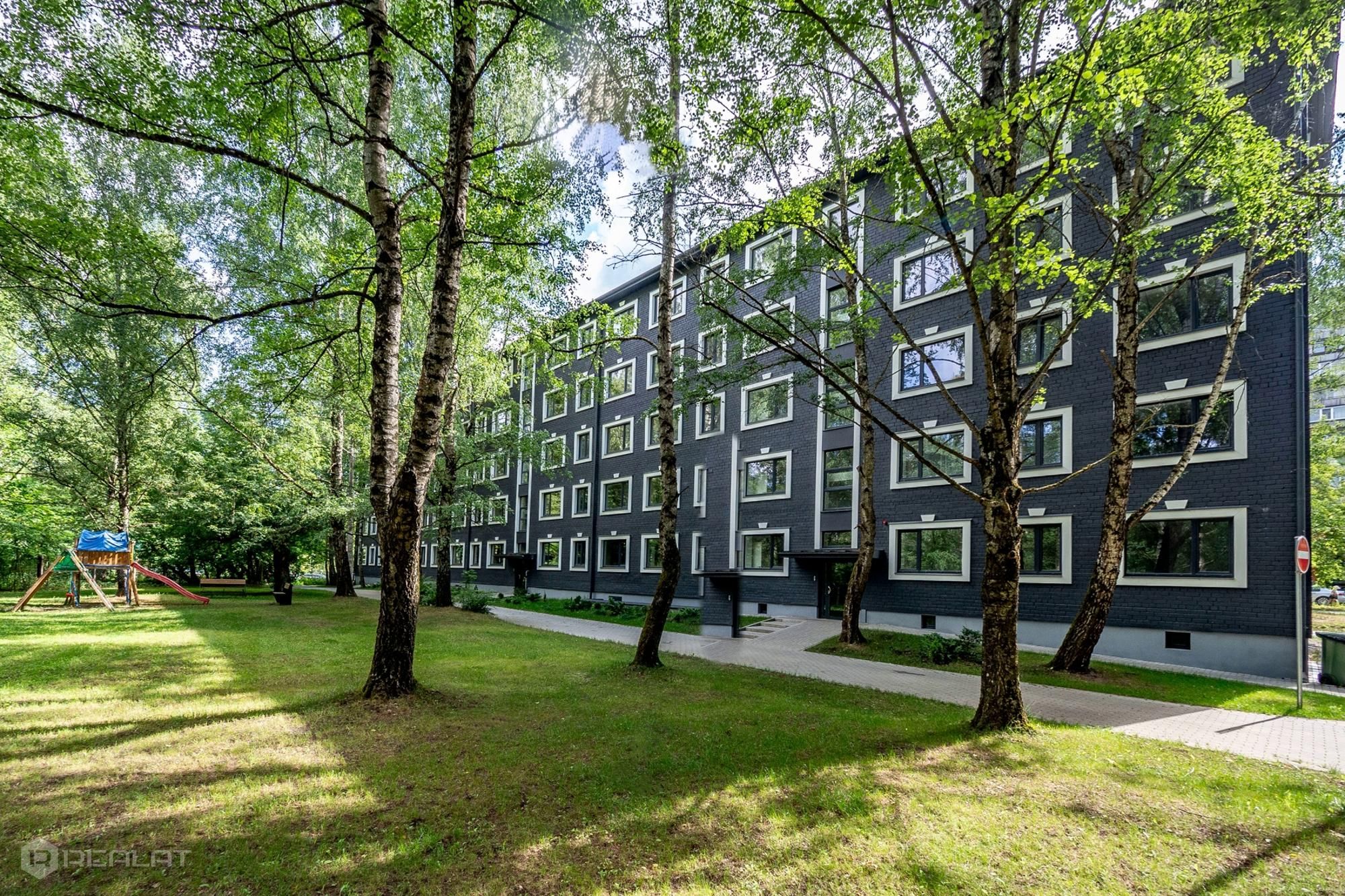 500 m from Ķīšezers Lake and only 7 km from the center of Riga, the property is a great example of successful reconstruction - the building, built in 1970, has been completely renovated, giving it a modern look, renovating the facade and completely replacing the internal communication systems. The project is an excellent example of a laconic and modern renovation, combining three concepts: compact, minimalism and cost-saving living.