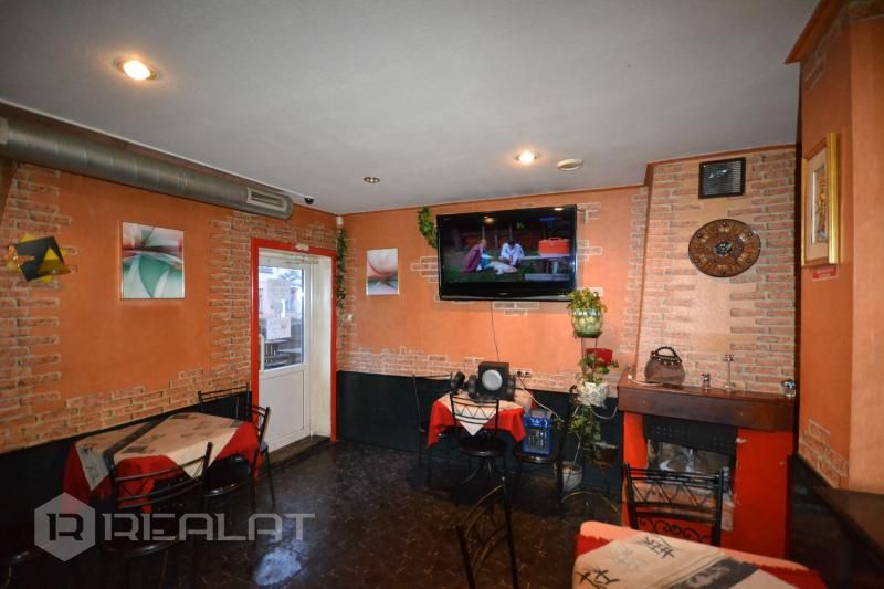Kafejnīcas un bāra zonā vieta vairākiem galdiņiem, izveidota piespiedu ventilācija.