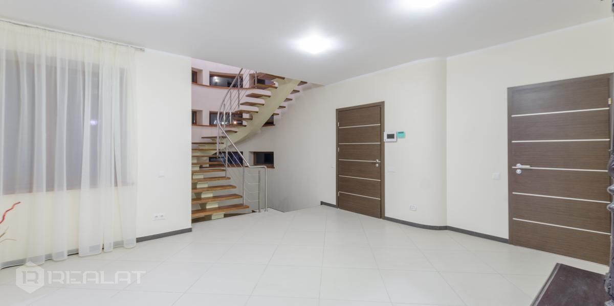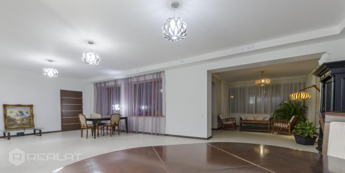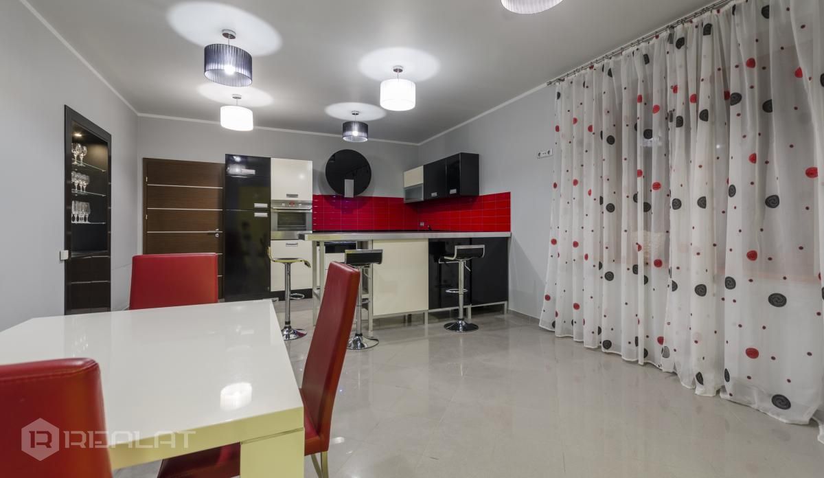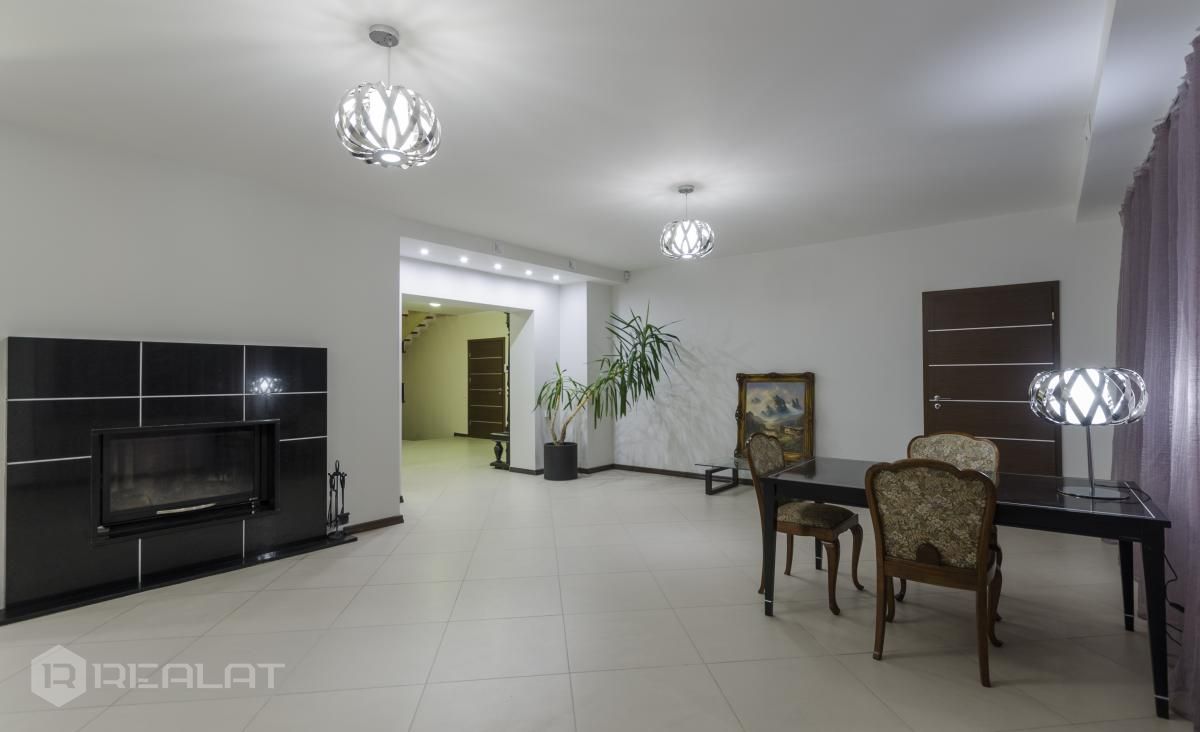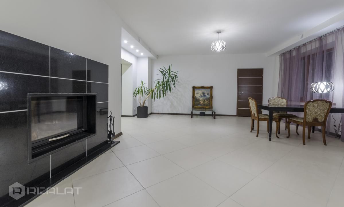 Ērtības - Mēbelēts, Garderobe, Vanna, Duša, Kamīns, Gāzes apkure, Autostāvvieta. Garāža, Jumta terase.