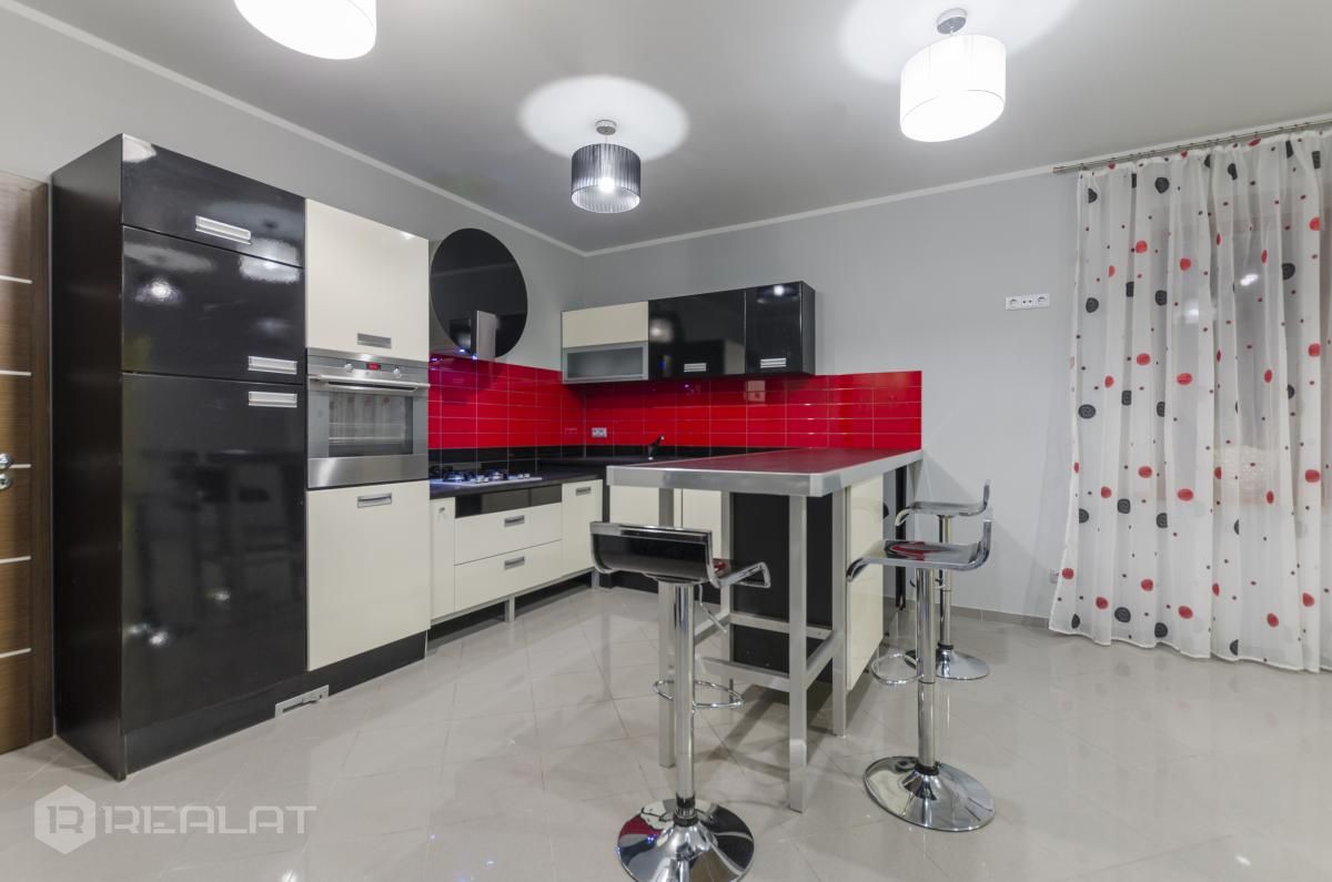Tehnika - visa nepieciešamā sadzīves tehnika, ledusskapis, trauku mazgājamā mašīna, veļas mašīna, veļas žāvētājs, cepeškrāsns, gāzes plīts, tvaiku nosūcējs.