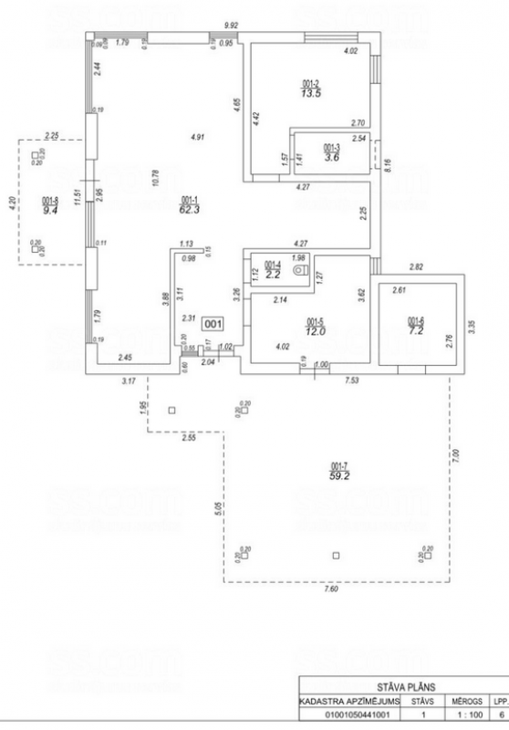 Plānojums - funkcionāls un pārdomāts telpu plānojums, istabas izolētas, virtuve apvienota ar viesistabu, četras istabas izolētas, garderobe.