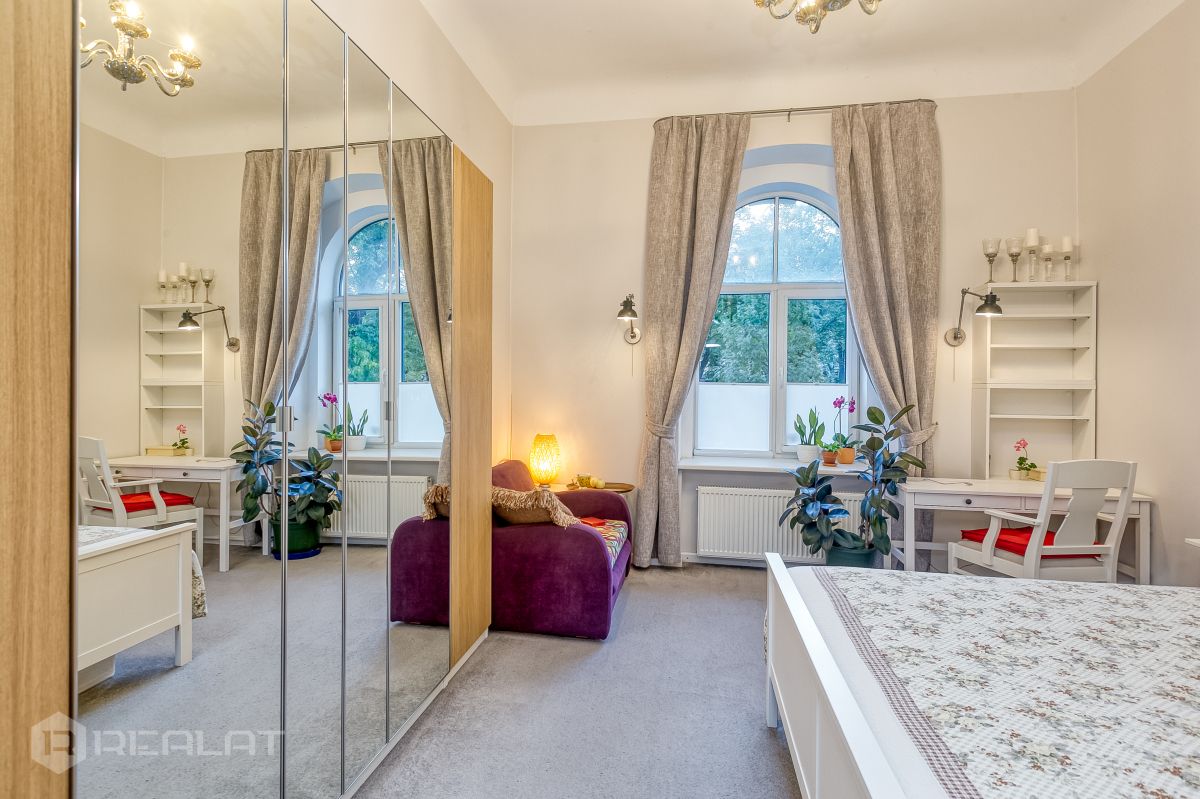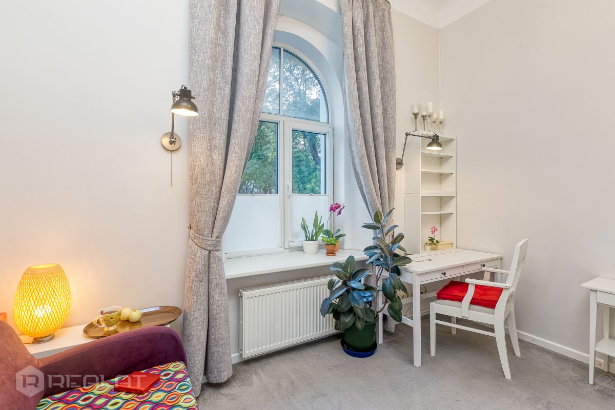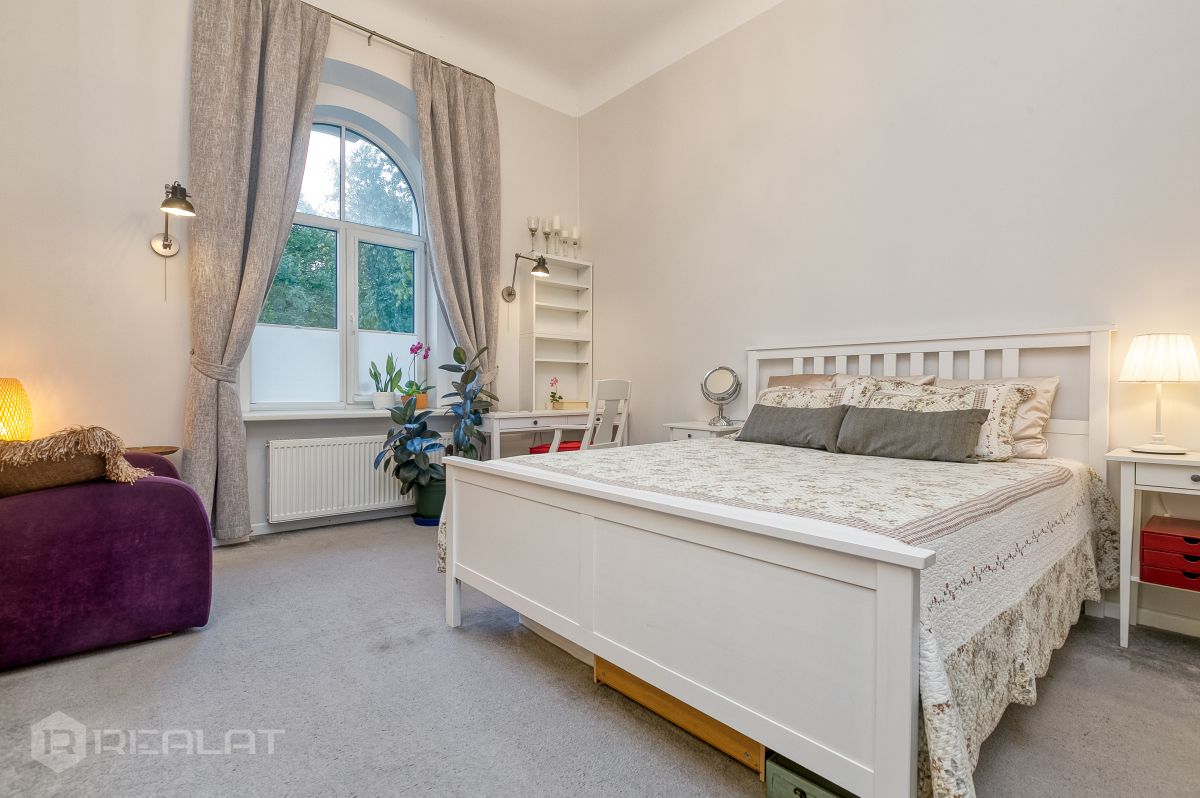 No dzīvokļa logiem redzams labs, plašs skats uz zaļo zonu uz parku. Dzīvokļa logi uz abām mājas pusēm – uz Jēkaba ielas parka pusi un uz pagalmu. Pagalmā rezervēta regulāra vieta automašīnas novietošanai.