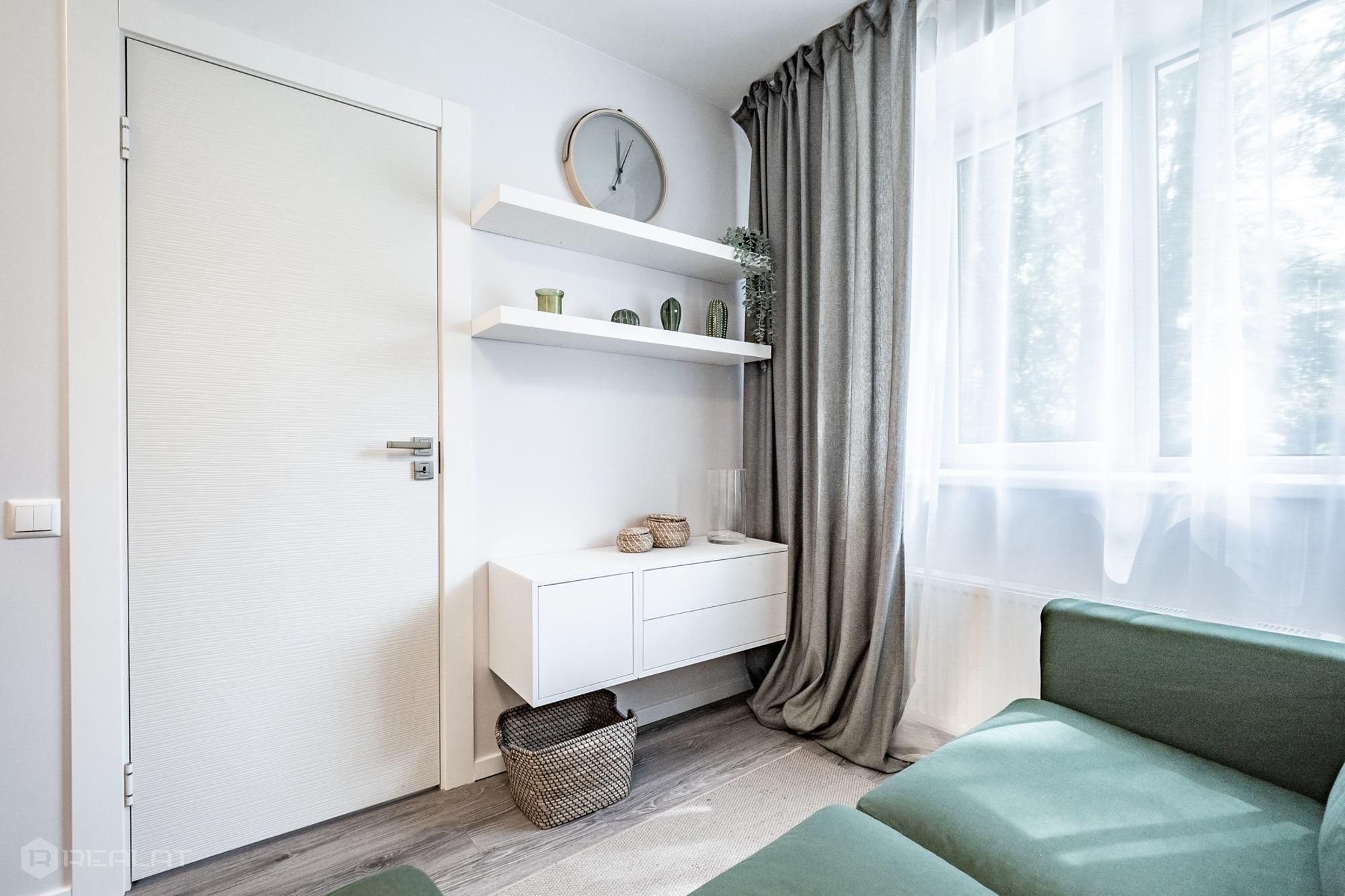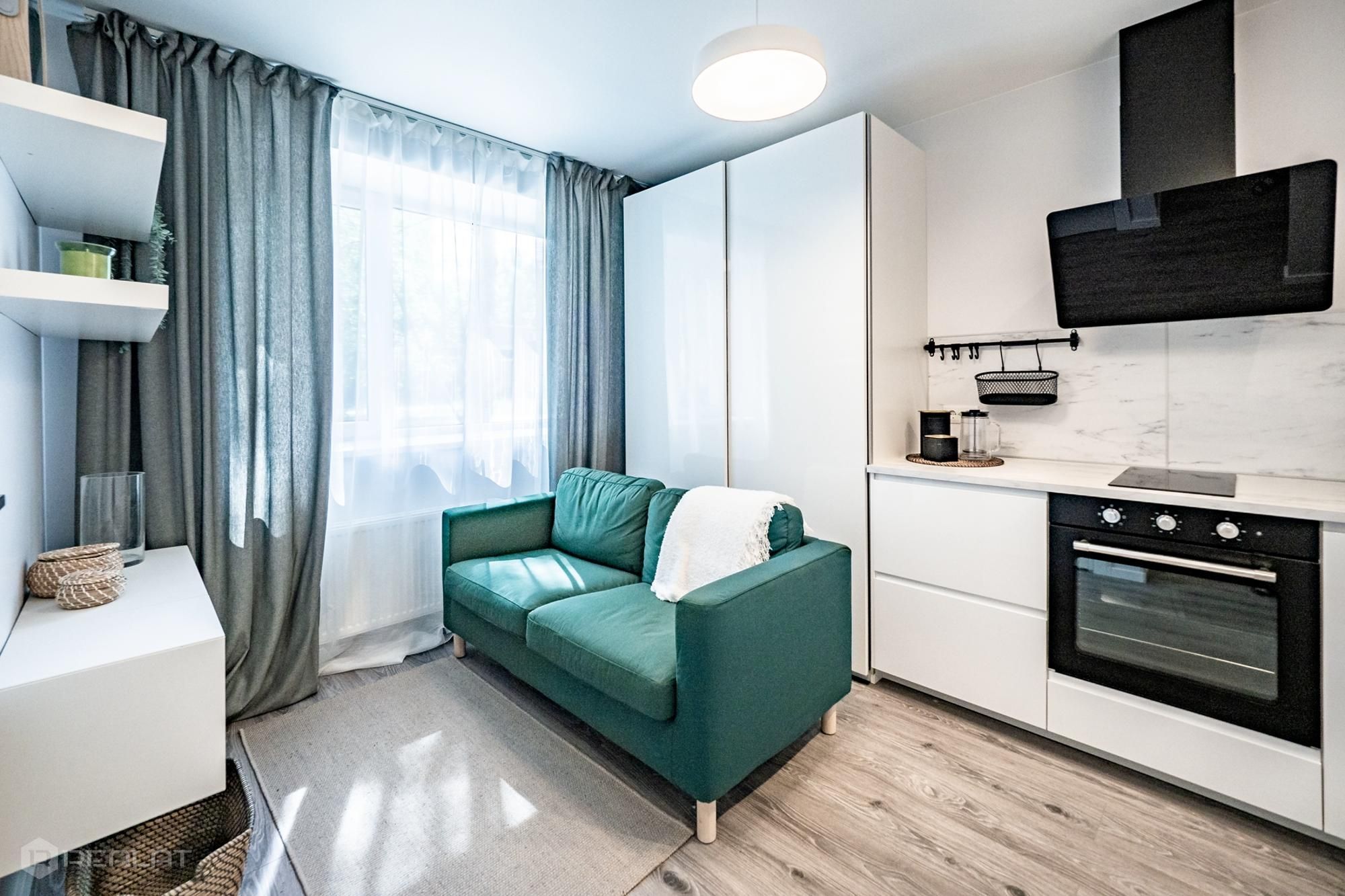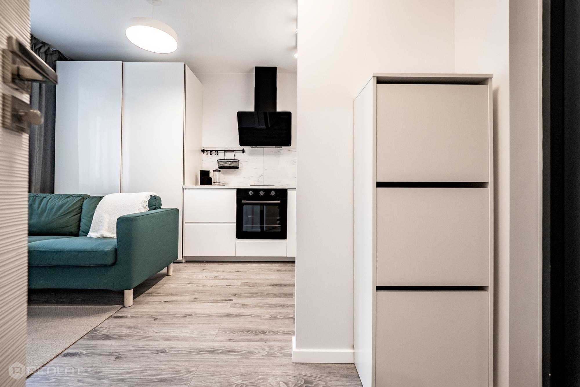 Iegādei tiek piedāvāti 105 kompakti studiju tipa vai divu istabu dzīvokļi, kuru platība ir no 15,7 līdz 34,5 m2. Dzīvokļiem (30) ar pilno augstas kvalitātes iekšējo apdari ir lamināta grīda EGGER 33. klase, nokrāsotas sienas un griesti, pilnībā aprīkota vannas istaba. Jums tikai atliek izvēlēties un pasūtīt mēbeles.