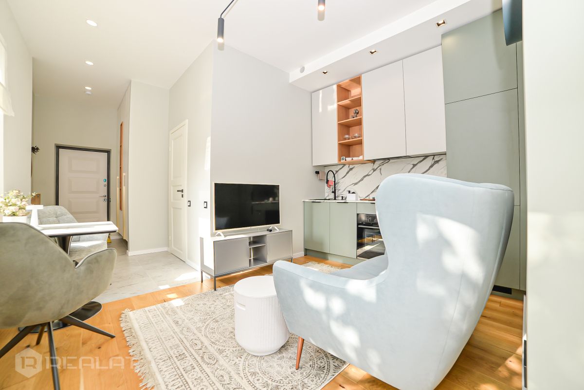 Izīrē uz 6–9 mēnešiem pilnībā aprīkotu un renovētu 2 istabu dzīvokli tikai 1,5 km no Vecrīgas. Gaišs, kluss, silts, ar logiem uz ielu un pagalmu. Slēgta, droša teritorija, eleganta kāpņu telpa un mājīgs interjers – atliek ienākt ar čemodānu.
