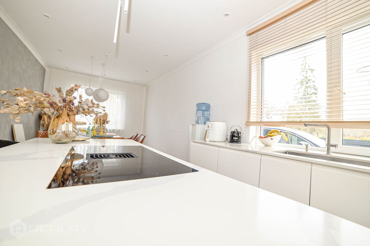 Piedāvājumā privātmāja ar izsmalcinātu interjeru, kas izskatās gluži kā no interjera dizaina žurnāla. Īpašums atrodas vienā no pieprasītākajām un mierīgākajām Carnikavas vietām – tikai 20sek gājienā no Gaujas upes, skaistā Carnikavas pludmale 5km attālumā, apkārtni rotā 7 ezeru tuvums.
