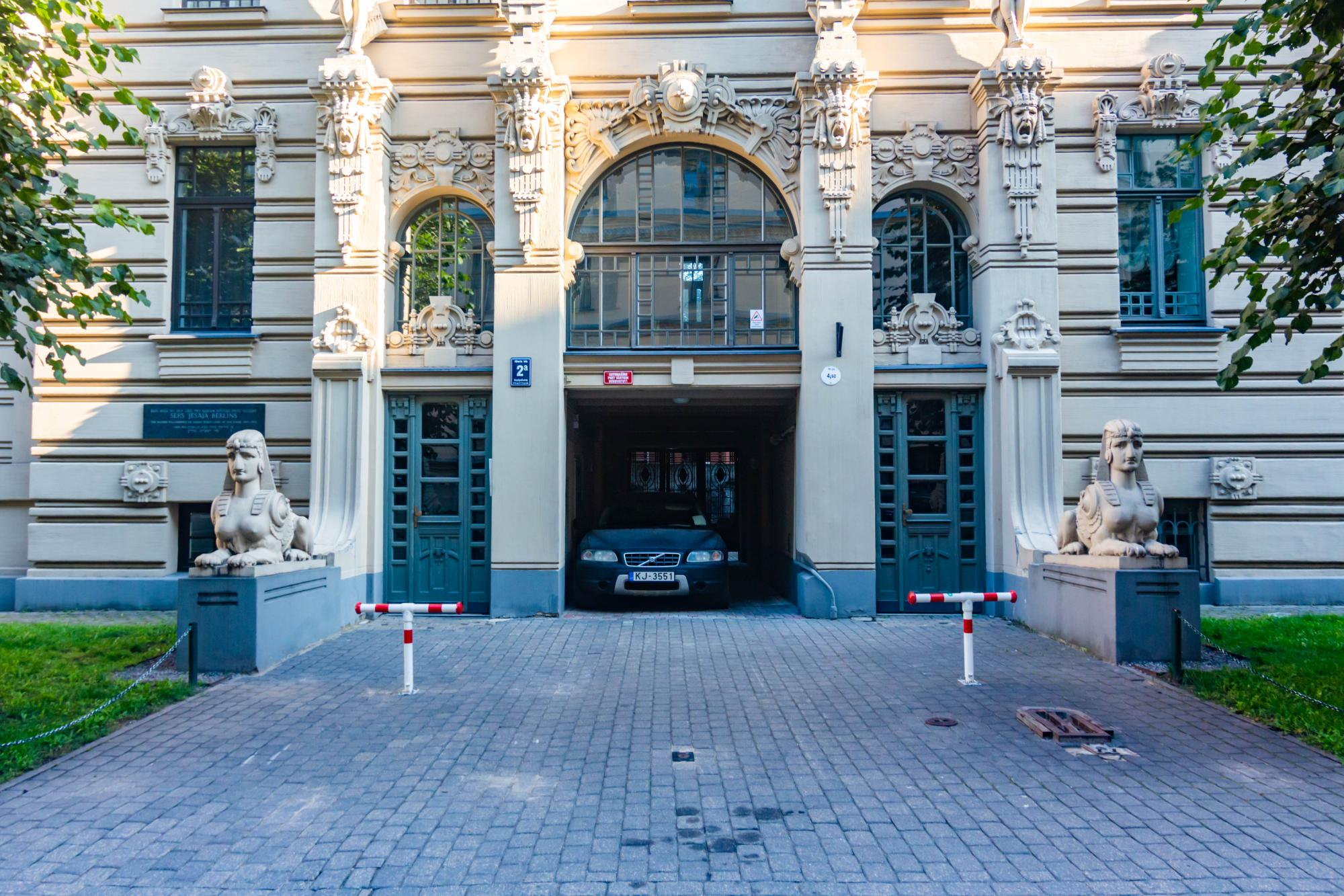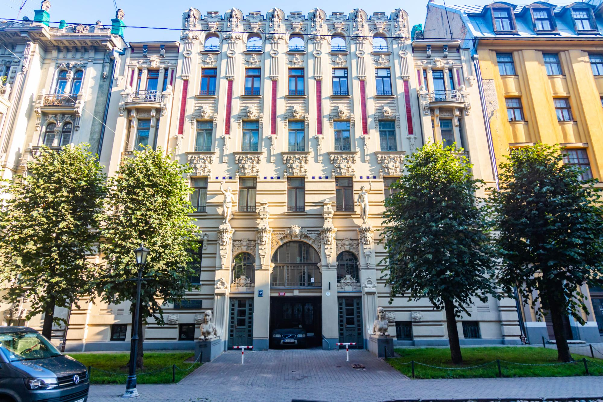 Rotmistra Vladimira Bogoslavska īres nams. Pēdējais pārliecinoši spilgtais eklektiski dekoratīvā jūgendstila piemērs, ko Rīgā projektējis M. Eizenšteins. Nama fasādi akcentē centrālais rizalīts, ko noslēdz atika ar brīnišķīgu efektu. Caur tajā izvietotajām logailām redzamas debesis un mākoņi, kas šim namam piešķir citas dimensijas. Fasādi rotājošās puskailās meiteņu figūras ar lāpām rokās un pie ēkas izvietotās sfinksu figūras ir spilgts apliecinājums M. Eizenšteina radošās domas lidojumam, kas rada Rīgas identitāti un šarmu. Tas ir vienīgais viņa projektētais nams, kura fasādes ir akcentētas ar glazētām flīzēm tumši sarkanā un zilā krāsā