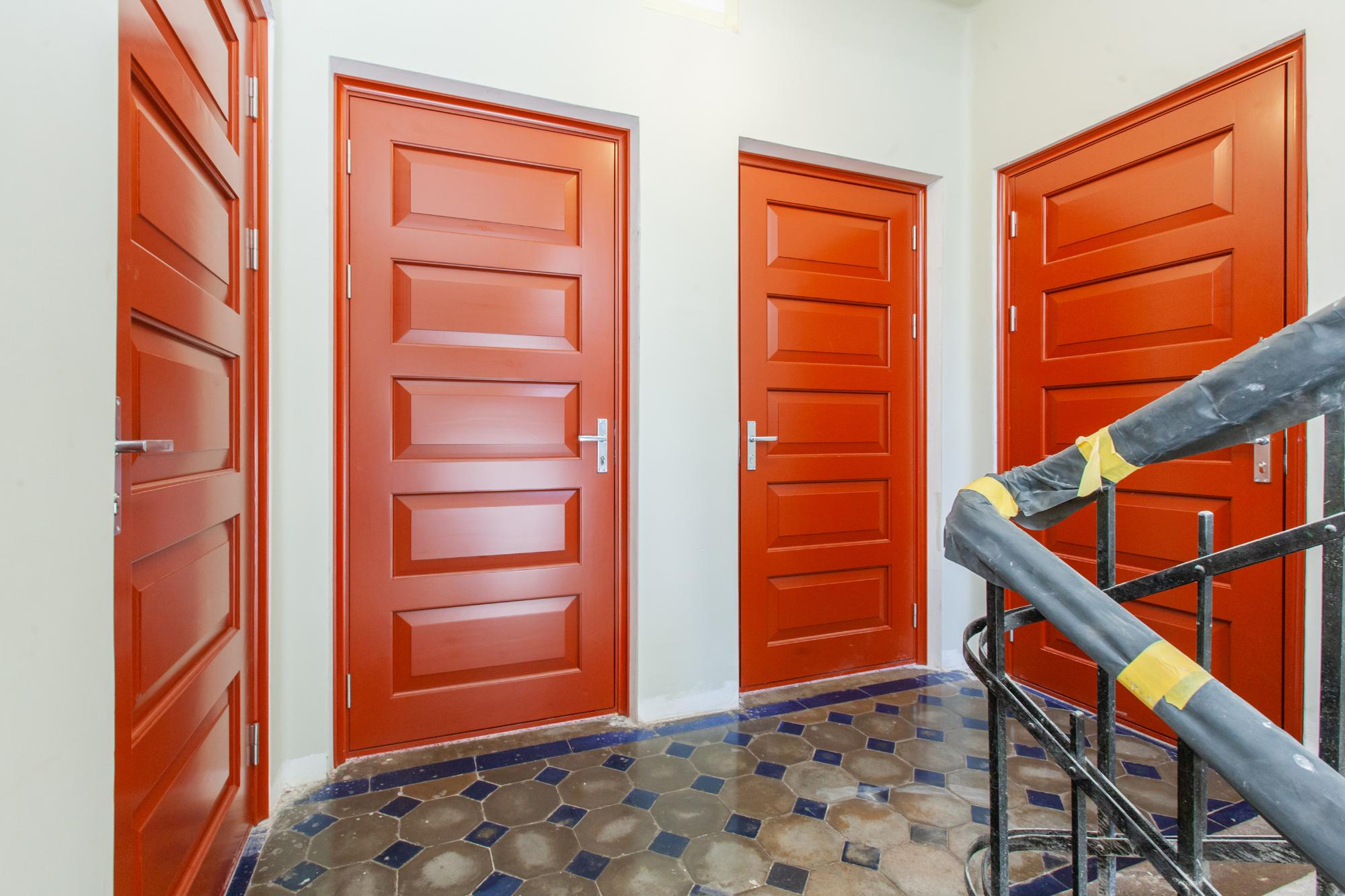 - kāpņu telpu un gaiteņu atjaunošanu, tajā skaitā visu dzīvokļu ārdurvju nomaiņu uz koka durvīm;