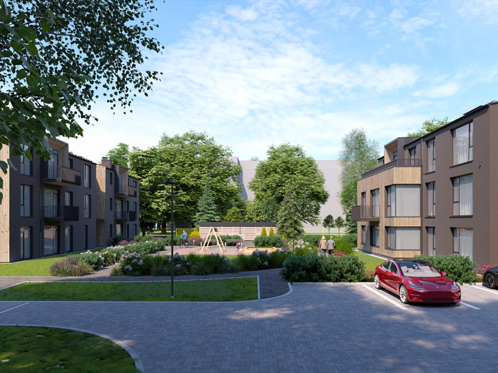 Slēgtā teritorija veidota tā, lai patīkami uzturēties laukā būtu gan pieaugušajiem, gan bērniem. Tajā atrodams spēļu laukums, pieejama slēdzama velonovietne, autostāvvieta katram dzīvoklim, padomāts arī par uzlādes vietām elektroauto.