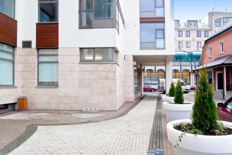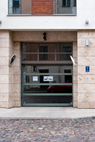 Pie ēkas ieejām un iebrauktuves autostāvvietā uzstādītas videokameras;