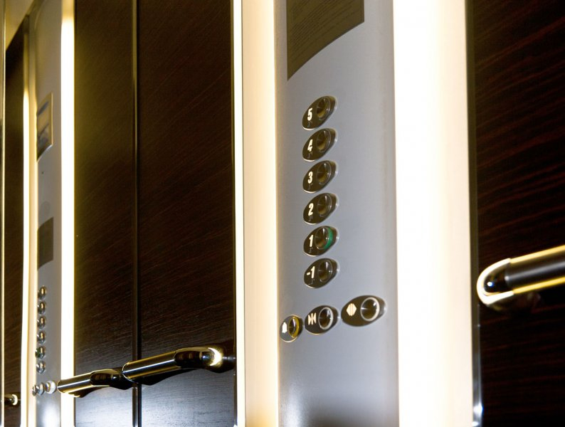 Ēkā ir divi "Otis" firmas lifti ar greznu iekšējo apdari;
