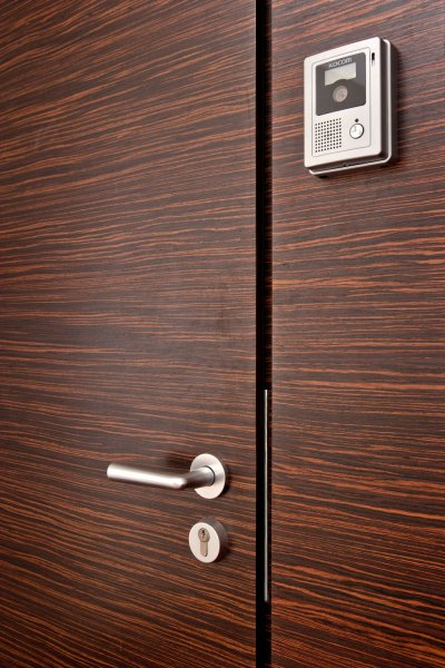 Dzīvokļu ārdurvis ar dabīga eksotiskā Venge koka finierējumu;