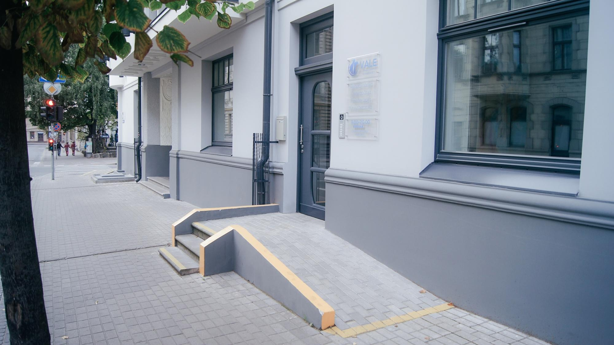 Ēku kompleksa fasādes restaurācija, logu un durvju nomaiņa.