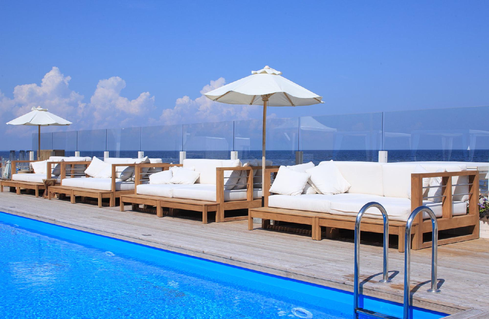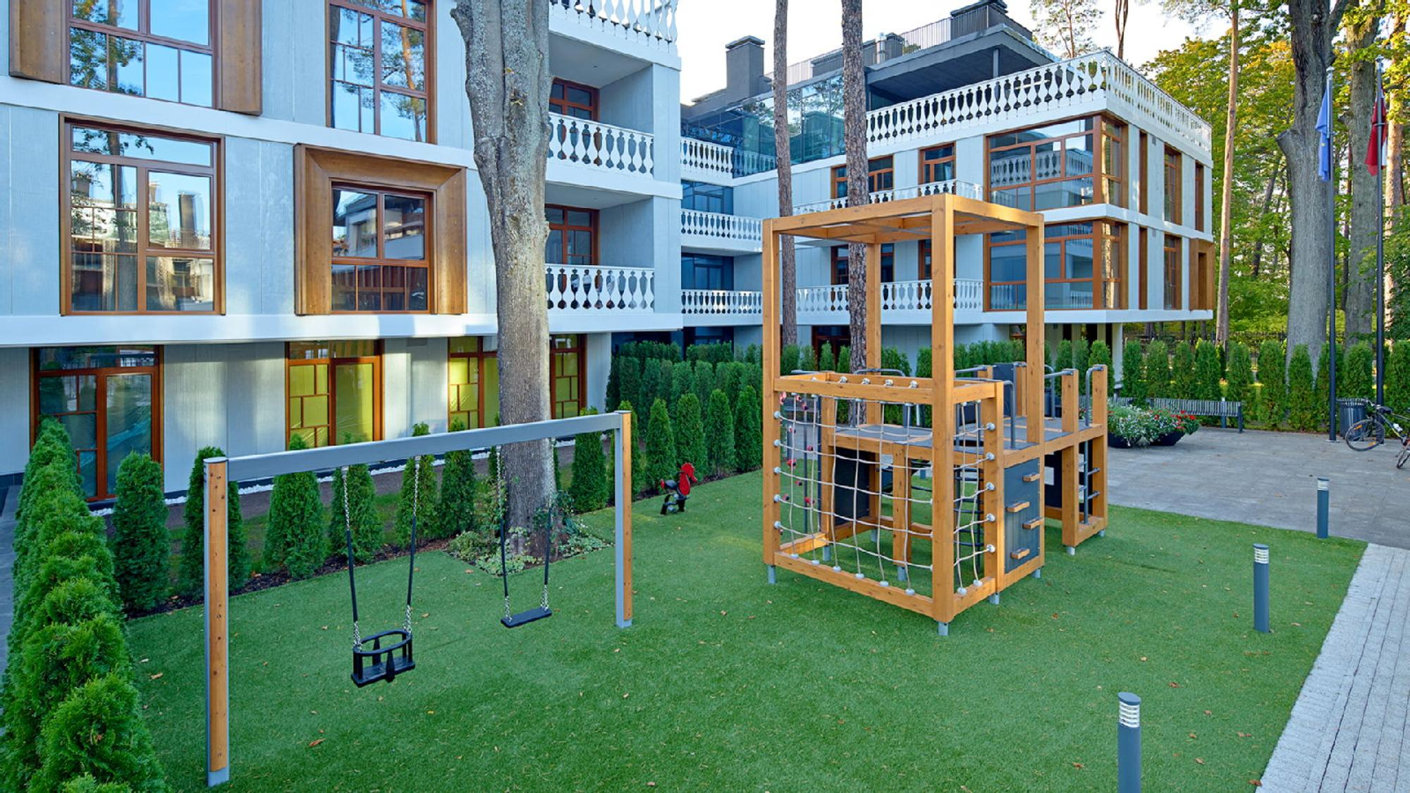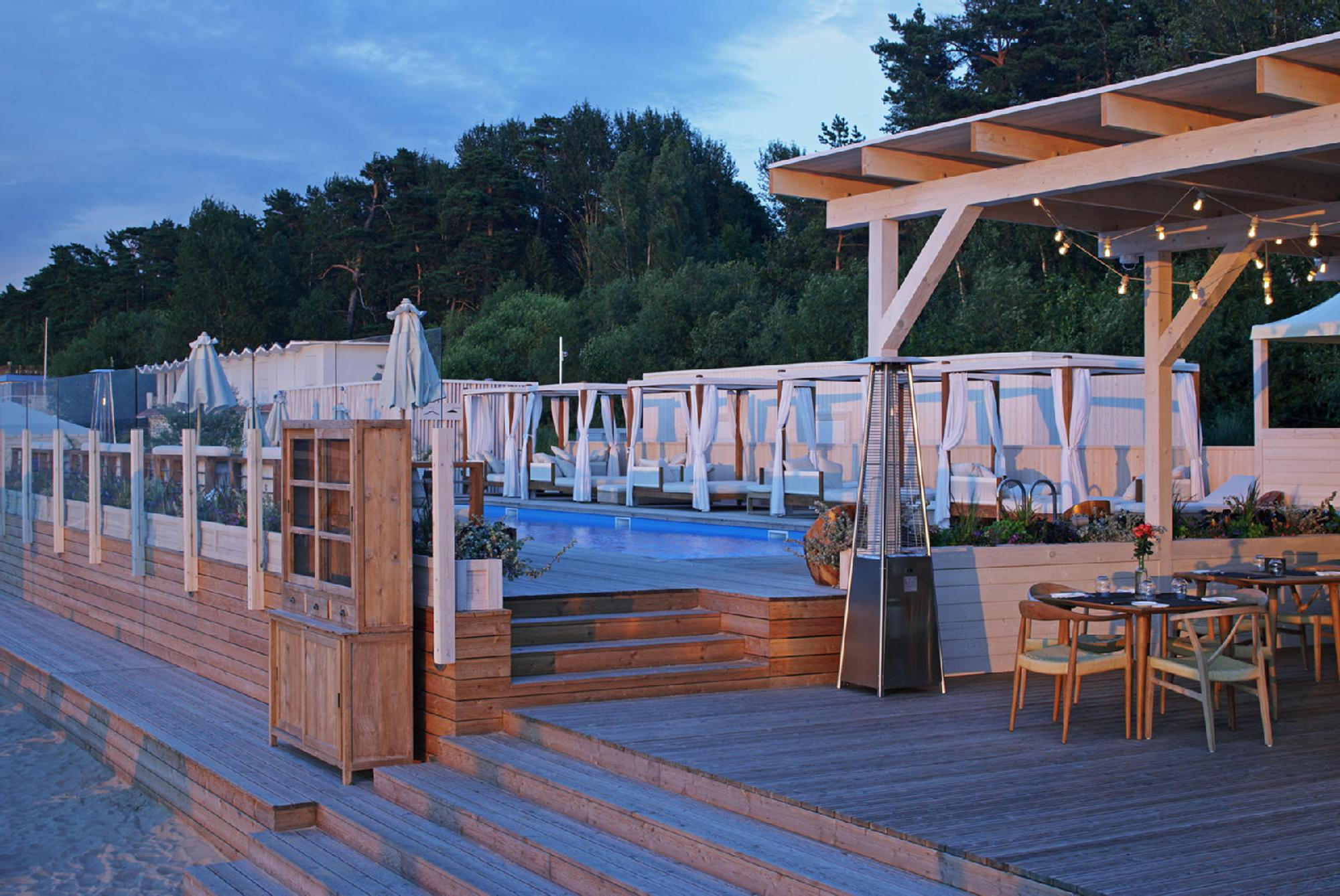Slēgtā, apsargājamā pludmales teritorijā, kas sniedzas 150 metru garumā, atrodas atpūtas komplekss ar baseinu, dušām, ērtiem šezlongiem, saules sargiem un nojumēm, bāru un restorānu. Šeit kvartāla iedzīvotāji būs VIP viesi un saņems augstākās kvalitātes servisu, kas atbilst kvartāla LEGEND. apkalpošanas līmenim. Patīkams un ērts papildinājums pludmales smiltīm, vienreizīgajiem saulrietiem un skuju smaržas caurvītai jūras brīzei.