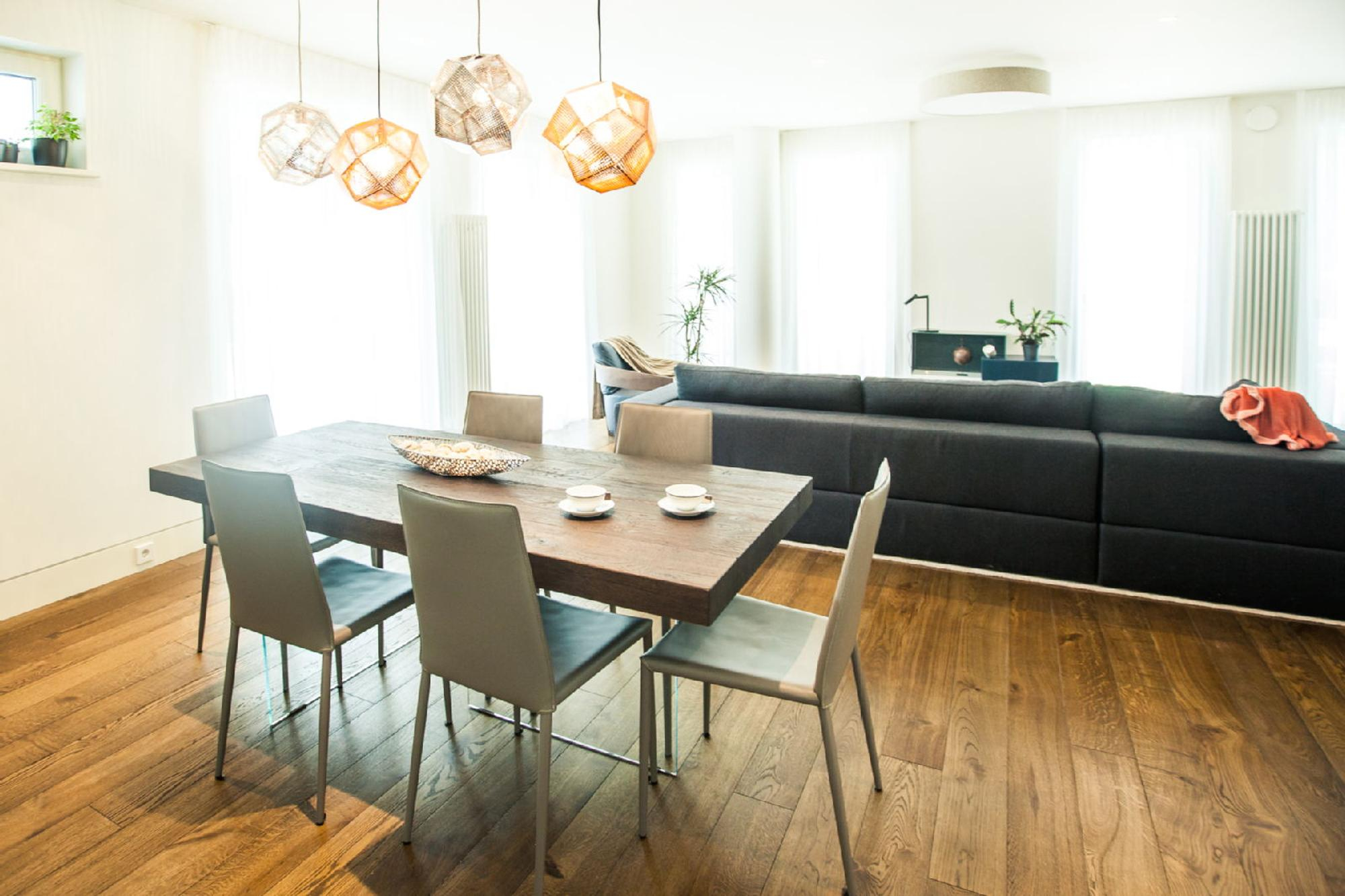 Grīdas - divslāņu ozolkoka parkets.