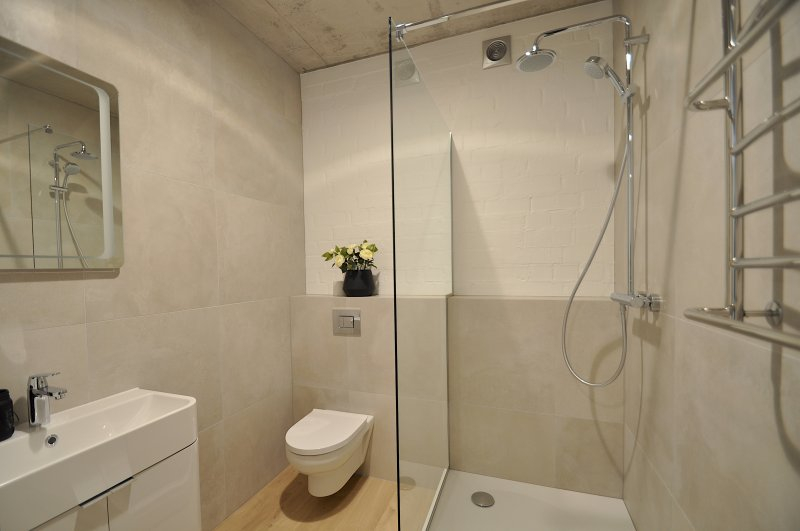 + kvalitatīvs ūdensizturīgs QUICK STEP lamināts, sanmezglos VITRA, GROHE, PAA santehnika.