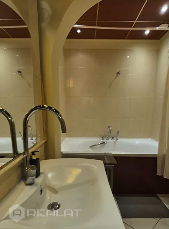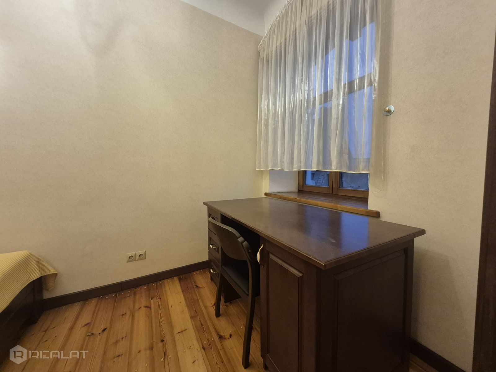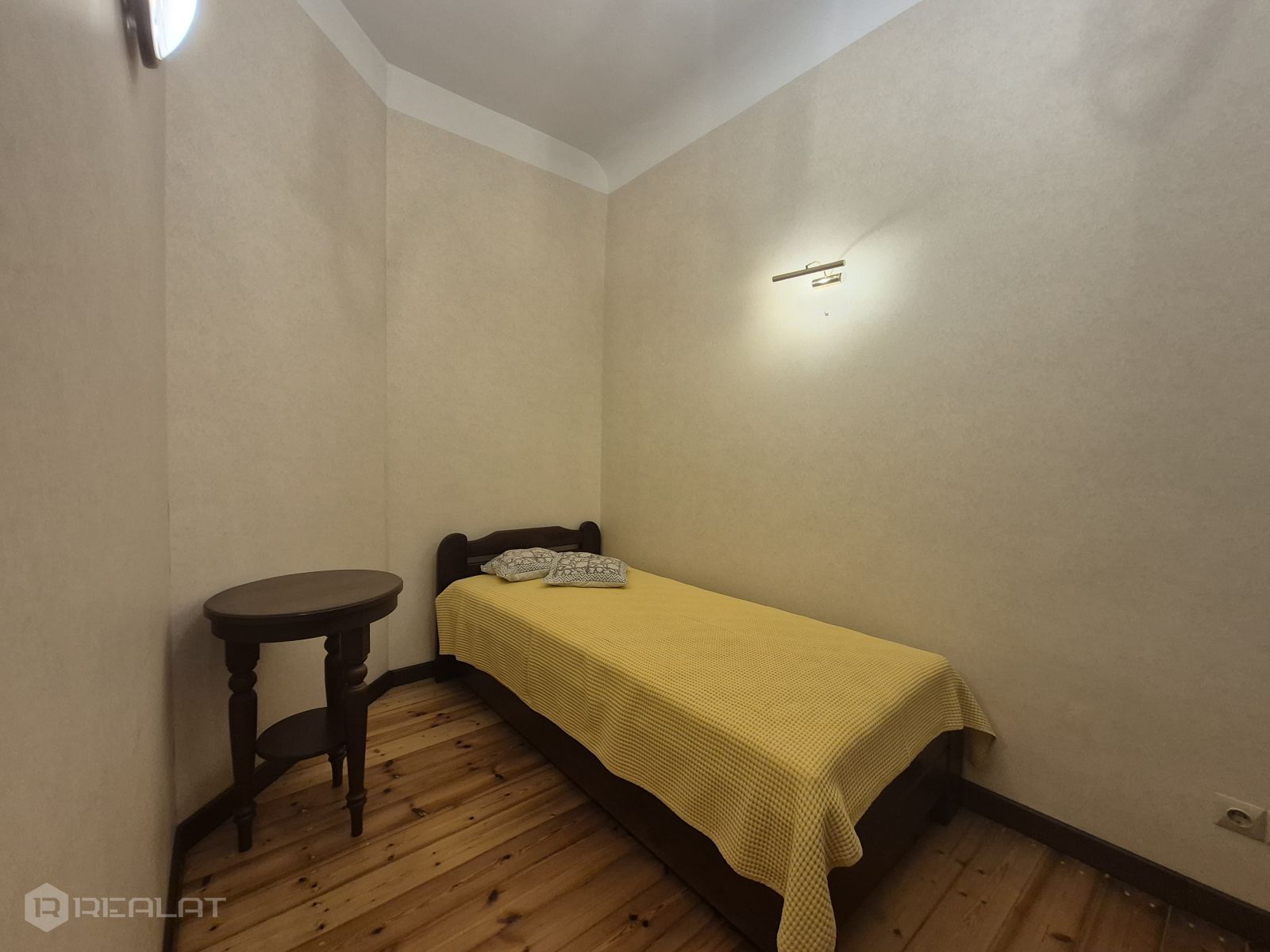 Dzīvoklis atrodas pagalma mājā, tāpēc te ir īpaši kluss, bet vienlaikus pāris soļu attālumā ir Vērmanes dārzs, veikali, kafejnīcas, izklaides vietas un izglītības iestādes.