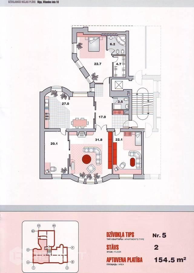 Dzīvoklis atrodas Vilandes ielā 10, vēstniecību rajonā, elitārā ēkā.