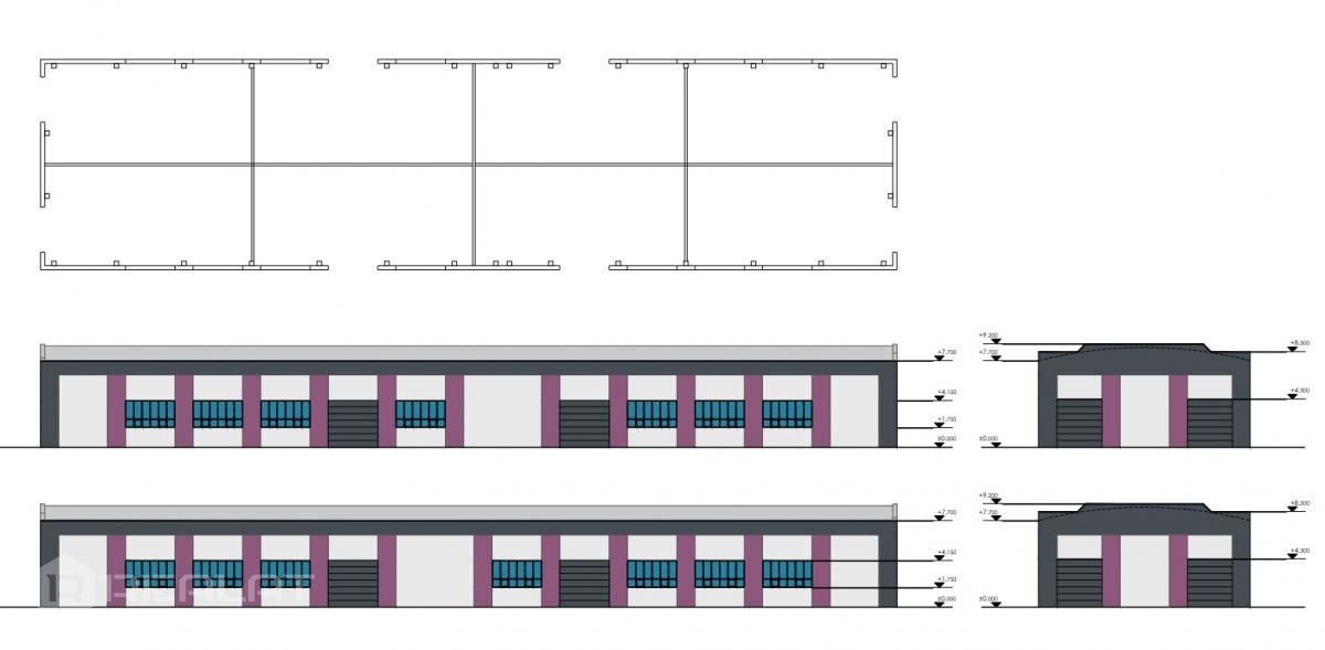 + 2. zemes līmeņa vārti 4,-m. x 4.5 m.