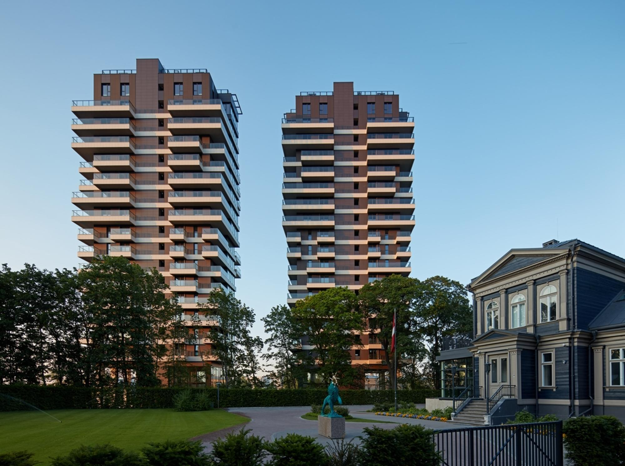 Projekts apvieno 2 daudzstāvu ēkas (22 stāvi un 23 stāvi) ar dažāda izmēra un virziena terasēm un balkoniem, kuras savieno pazemes stāvvieta vairāk kā 100 automobiļiem.
