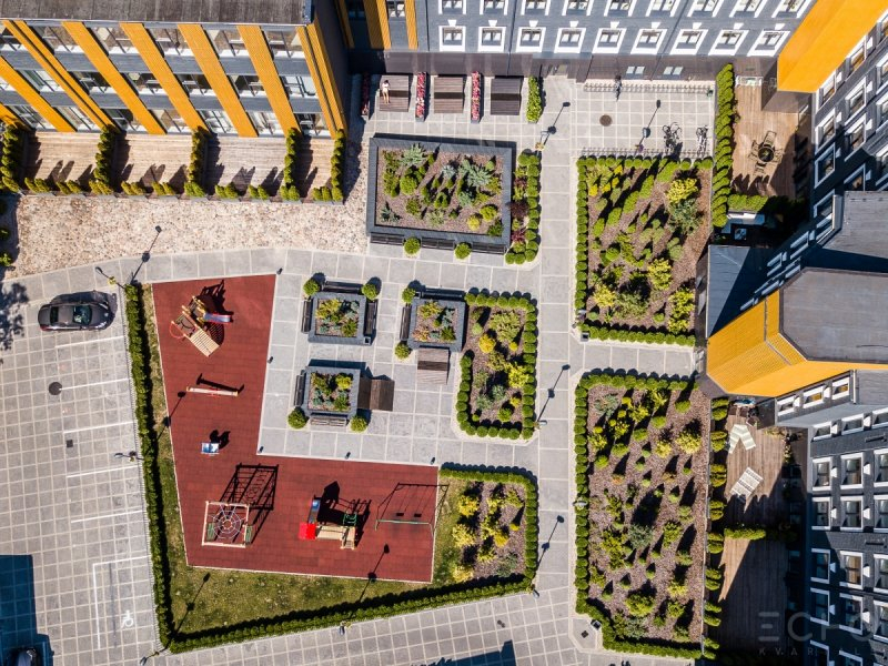 Īstu "kaimiņu" sajūtu veido labiekārtots iekšpagalms draudzīgai kopā sanākšanai.