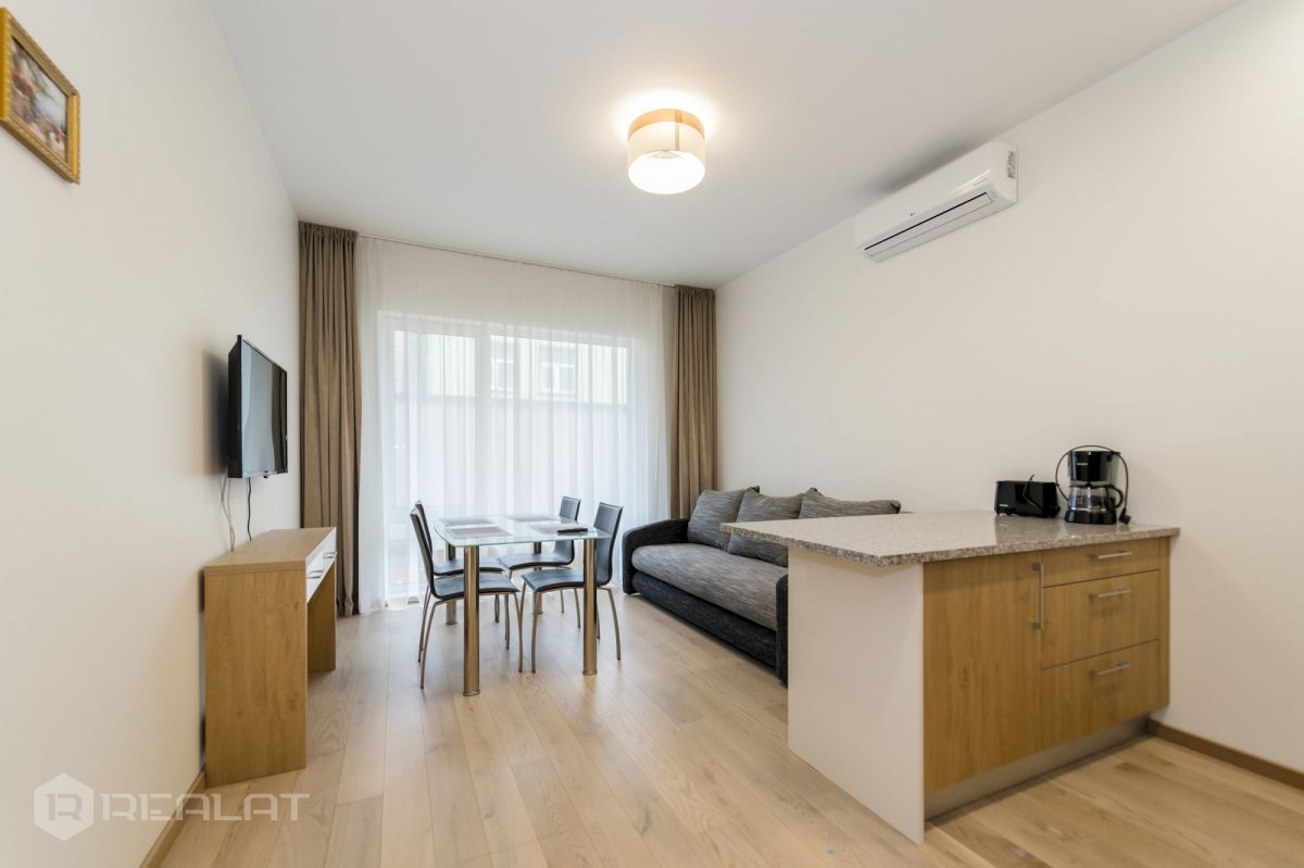 Dzīvoklis ar augstākās kvalitātes apdari, piedāvājot mūsdienīgus risinājumus un ērtības. Lieli logi visās telpās nodrošina bagātīgu dabisko apgaismojumu, radot dzīvoklī gaišu un saulainu atmosfēru, augstas kvalitātes santehnika, dabīgā koka parkets, apsildāmas flīžu grīdas sanmezglos, kā arī kondicionieris, kas nodrošina komfortablu temperatūru visos gada laikos.