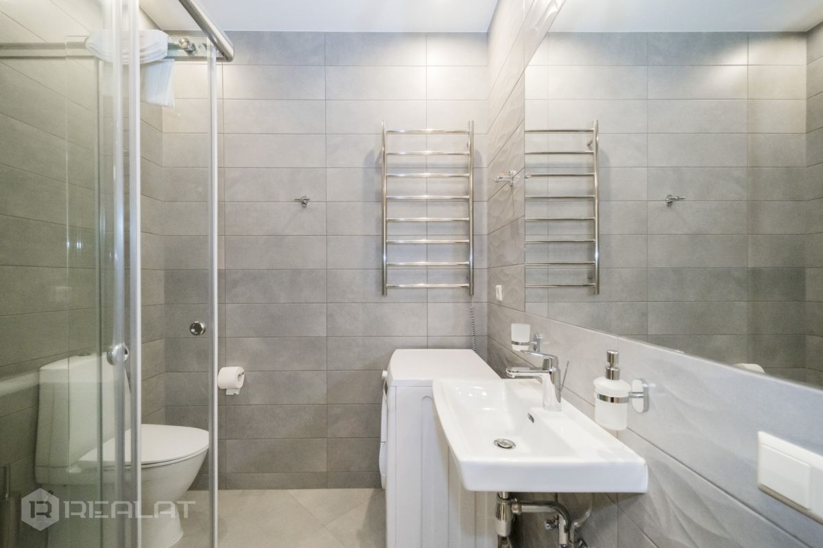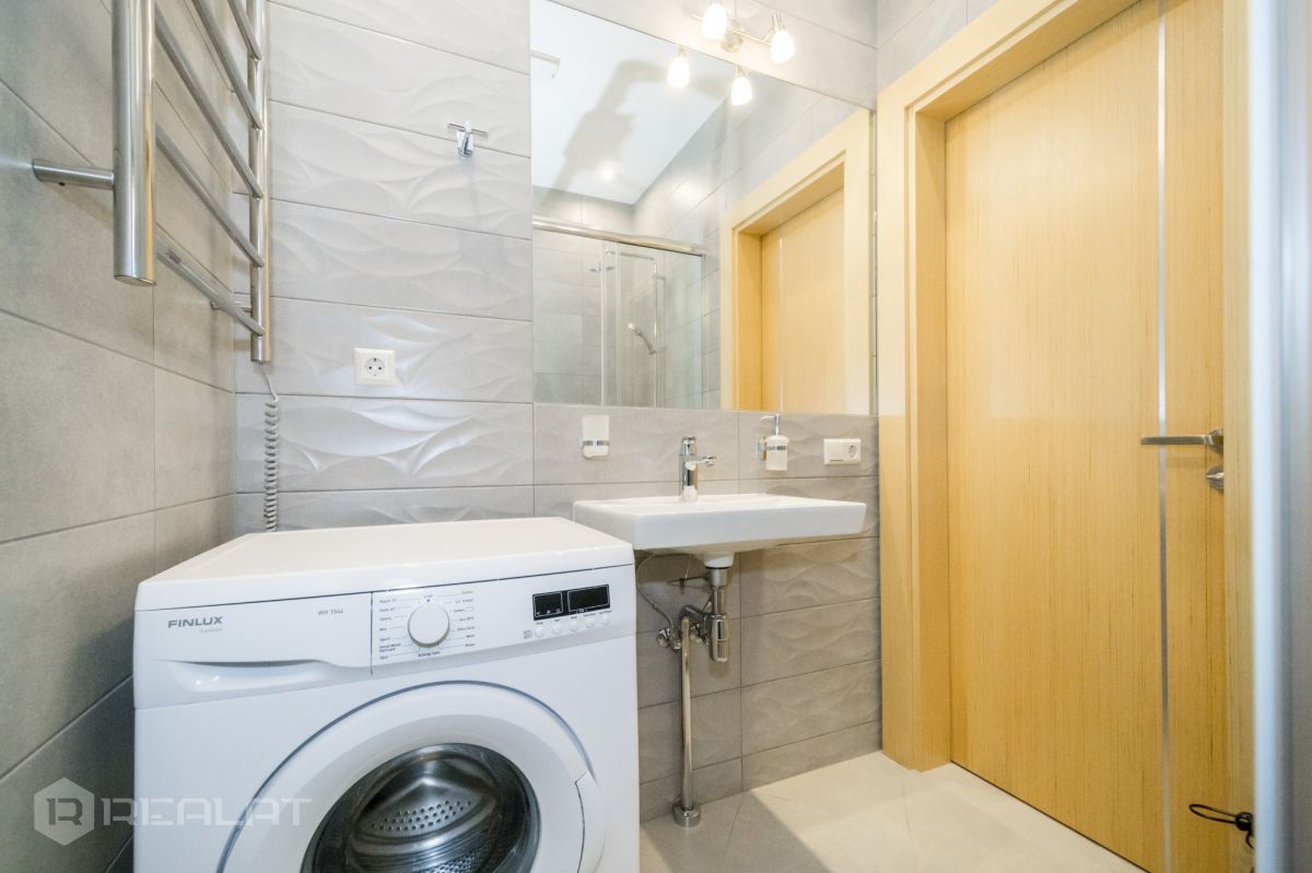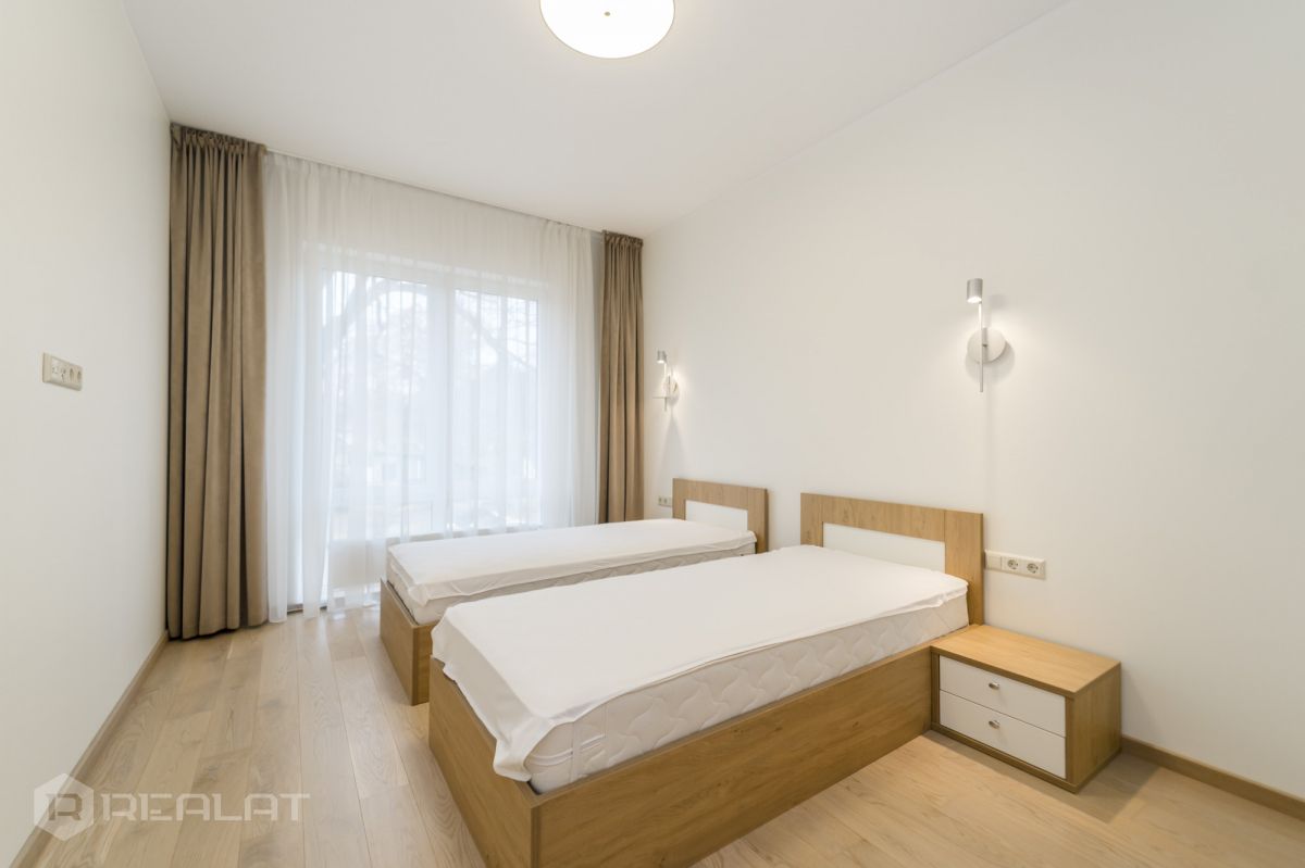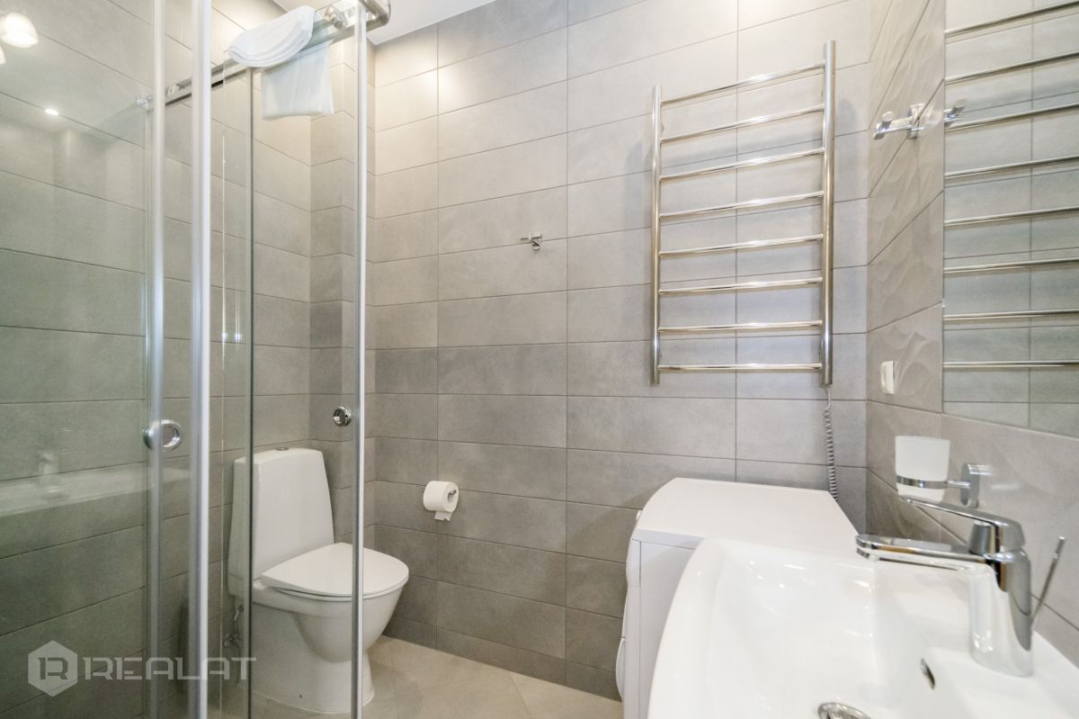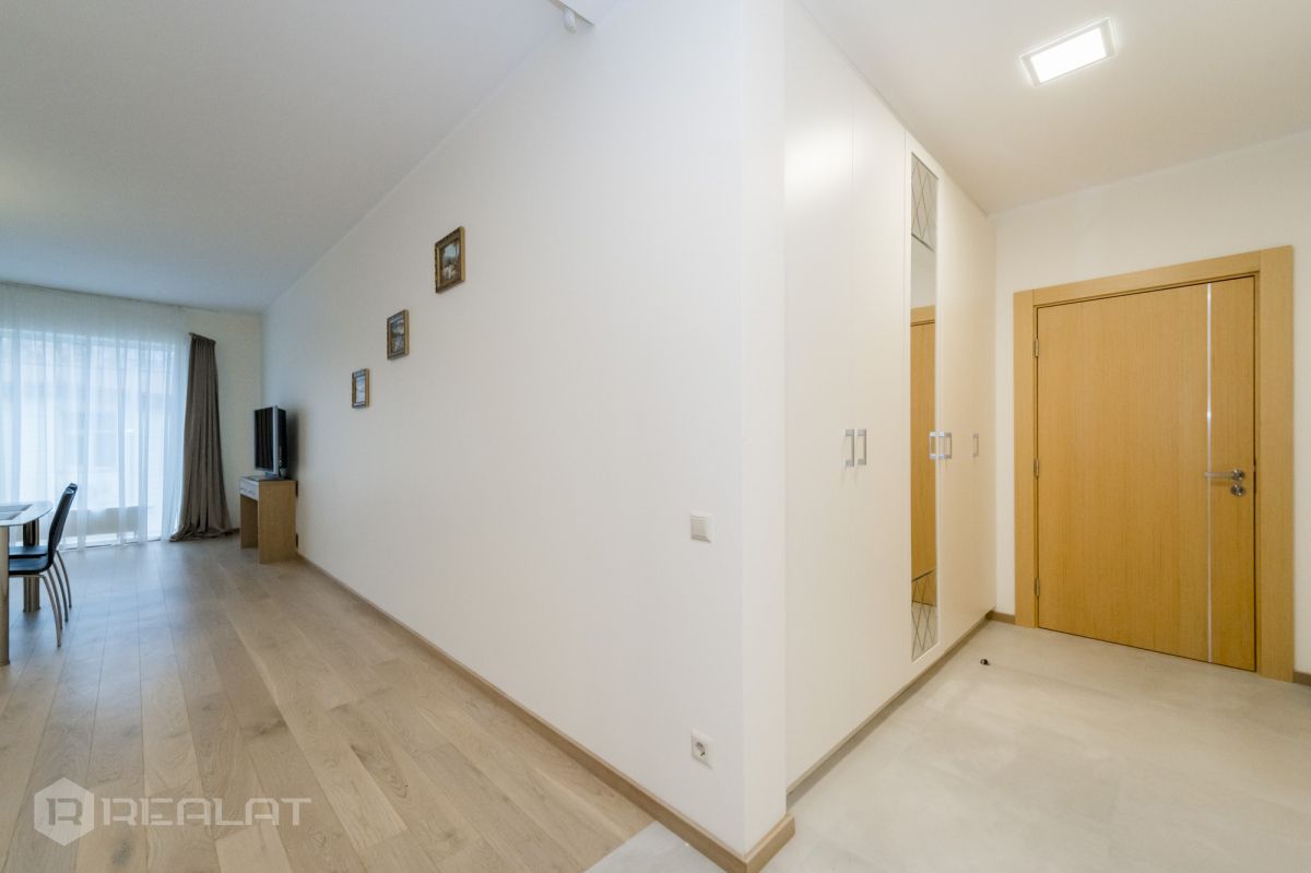 Dzīvoklis ar augstākās kvalitātes apdari, piedāvājot mūsdienīgus risinājumus un ērtības. Lieli logi visās telpās nodrošina bagātīgu dabisko apgaismojumu, radot dzīvoklī gaišu un saulainu atmosfēru, augstas kvalitātes santehnika, dabīgā koka parkets, apsildāmas flīžu grīdas sanmezglos, kā arī kondicionieris, kas nodrošina komfortablu temperatūru visos gada laikos.