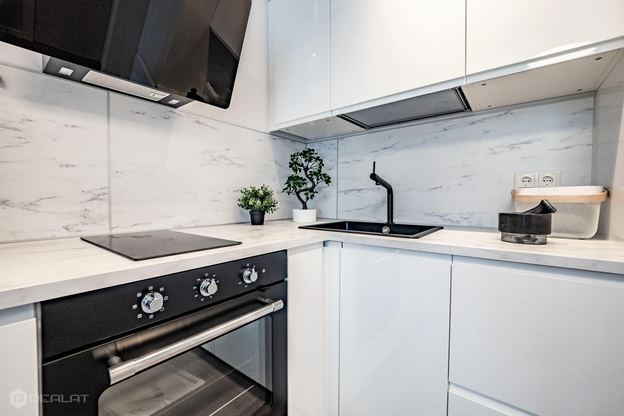 Iegādei tiek piedāvāti 105 kompakti studiju tipa vai divu istabu dzīvokļi, kuru platība ir no 15,7 līdz 34,5 m2. Dzīvokļiem (30) ar pilno augstas kvalitātes iekšējo apdari ir lamināta grīda EGGER 33. klase, nokrāsotas sienas un griesti, pilnībā aprīkota vannas istaba. Jums tikai atliek izvēlēties un pasūtīt mēbeles.