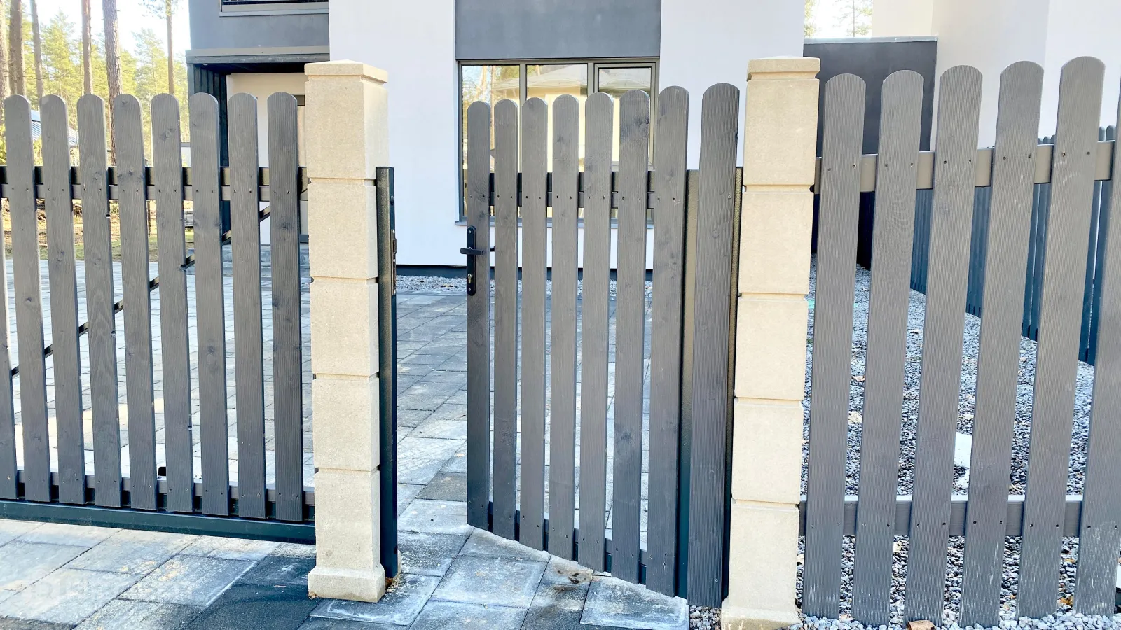 Atsevišķi automātiskie ieejas vārti katrai mājas daļai.