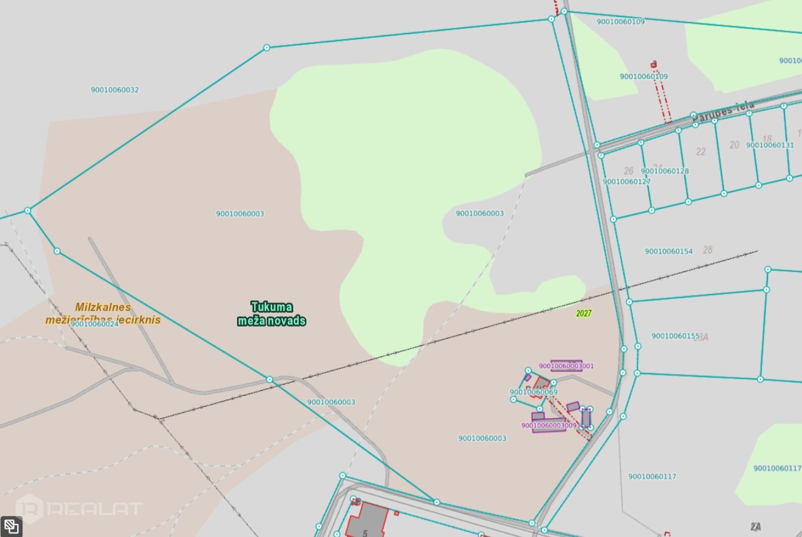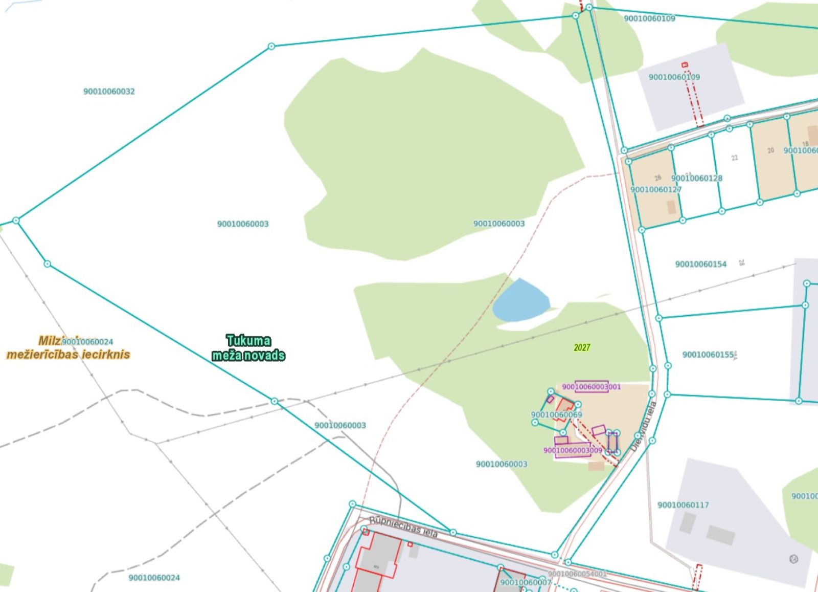 - dabas un apstādījumu teritorija (kartē zaļā zona, DA2).