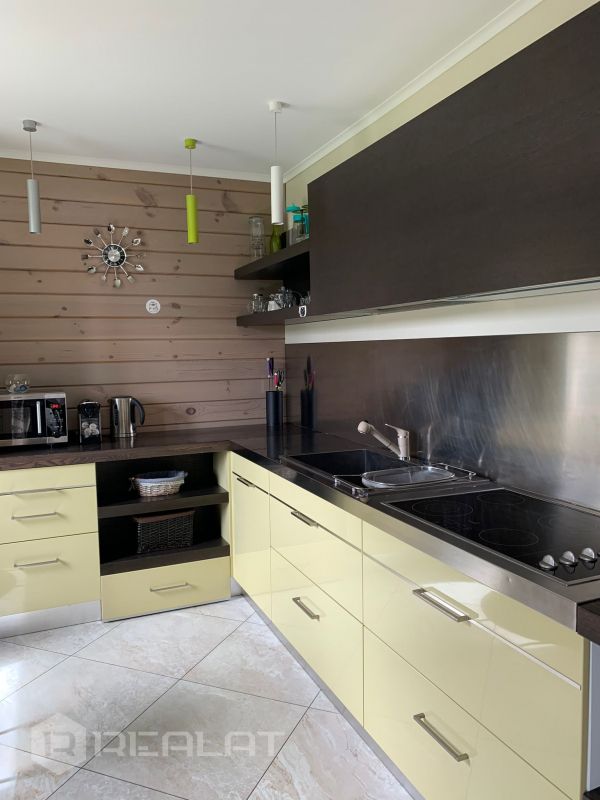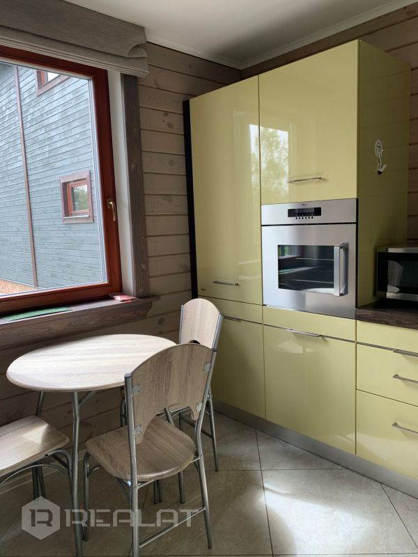 Дом из клееного бруса, отделанный камнем и оснащенный новейшими разработками в области энергосбережения. В посёлке 5 домов, сигнализация внутренняя и периметральная, система видеонаблюдения, территория обслуживается. В доме высокоэффективная система отопления. Природные газ, солнечный коллектор, камин с теплообменником, объединённый в общую систему отопления.