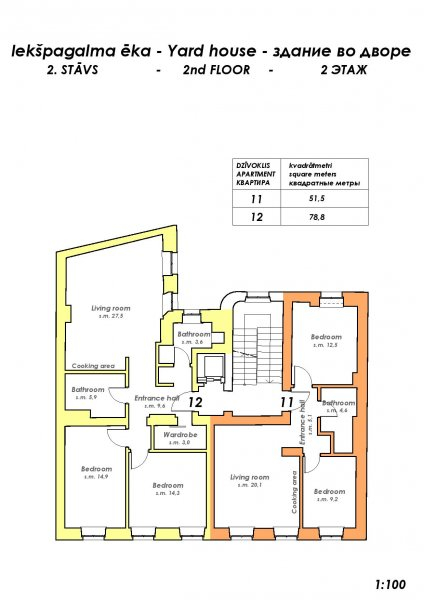 В здании, расположенном во дворе коплекса также имеются 9 квартир площадью от 51м2 до 80м2, а также 9 подвальных помещений для хранения и закрытый гараж площадью 22м2.