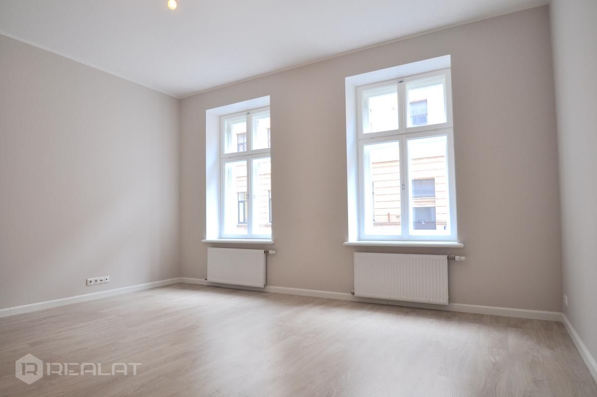В парадном здании предлагаются квартиры площадью от 50 до 140 м2. Эти квартиры украшены уникальными историческими свидетельствами - деревянным паркетом и потолочными орнаментами, оригинальными витражными окнами и резными деревянными лестницами на лестничных клетках. Эти квартиры предлагаются в существующем состоянии, чтобы новые владельцы не лишались возможности перепланировать помещения и тем самым сохранить аутентичные детали. Фасад здания также предлагает на выбор два выдающихся жилища на 3-м и 4-м этажах, которые имеют романтические балконы, выходящие на улицу Базникас. Жильцы обоих зданий также смогут пользоваться общими преимуществами. Например, вы сможете приобрести кладовые помещения, пользоваться хранилищем для велосипедов и специальной прачечной.