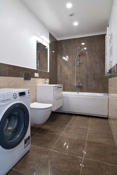 Дополнительно - полностью оборудованная кухня со всей необходимой бытовой техникой (стиральная машина, посудомоечная машина, индукционная плита, электрическая духовка, вытяжка от Bosch и Electrolux)