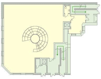 Помещения с ветринами площадью 870 м2 занимают три этажа (п/п,1,2) и соеденины одной лестницей, для удобства имеется гузовой лифт.
