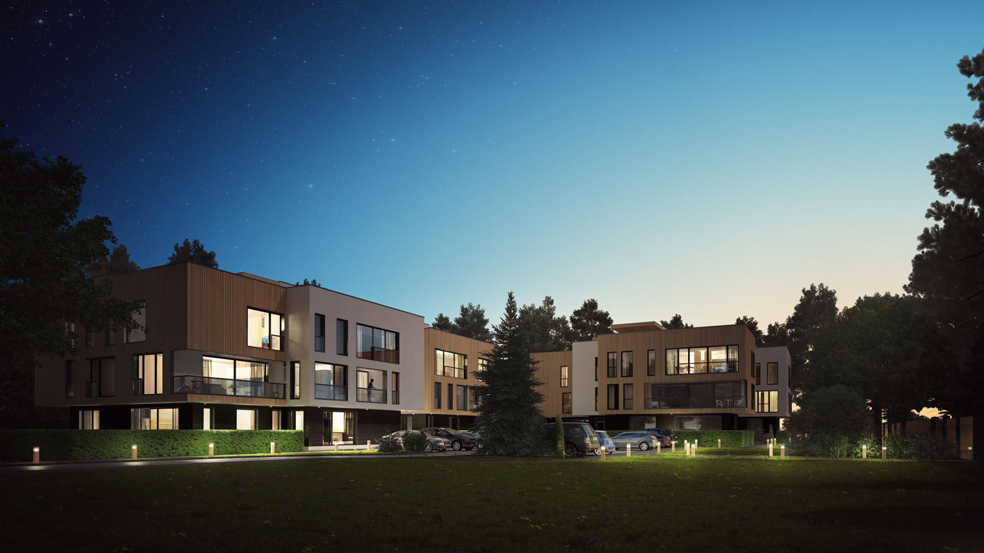 При разработке проекта PineWood Apartments перед архитекторами бюро MARK ARHITEKTI стояла задача не только интегрировать проект в общую картину невысоких юрмальских строений и соснового леса, но и создать экологически эффективный комплекс, отвечающий требованиям современной семьи. Для проекта был выбран лаконичный, гармонирующий с окружающей средой стиль. Исторический особняк на участке подлежит реконструкции, предусматривающей бережное сохранение его первоначального образа с использованием современных элементов.